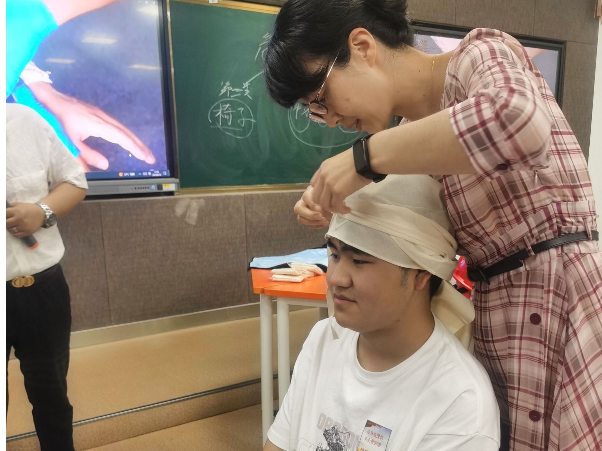 活动伊始,南京应急安全生产培训专家向师生详细讲解特种设备使用管理的政策法规、操作规程、常见事故原因及应对措施。在随后的应急救援沙盘推演中,师生以团队分组为单位进行积分互动、知识抢答、伤员包扎等,参加人员沉浸式系统学习了危险源辨识、风险评价、事故现场信息研判、应急救援预案等应急管理流程。在实战演练中,师生们现场演练模拟特种设备发生伤人事故后的现场救援、隐患排查以及现场处置全过程。
