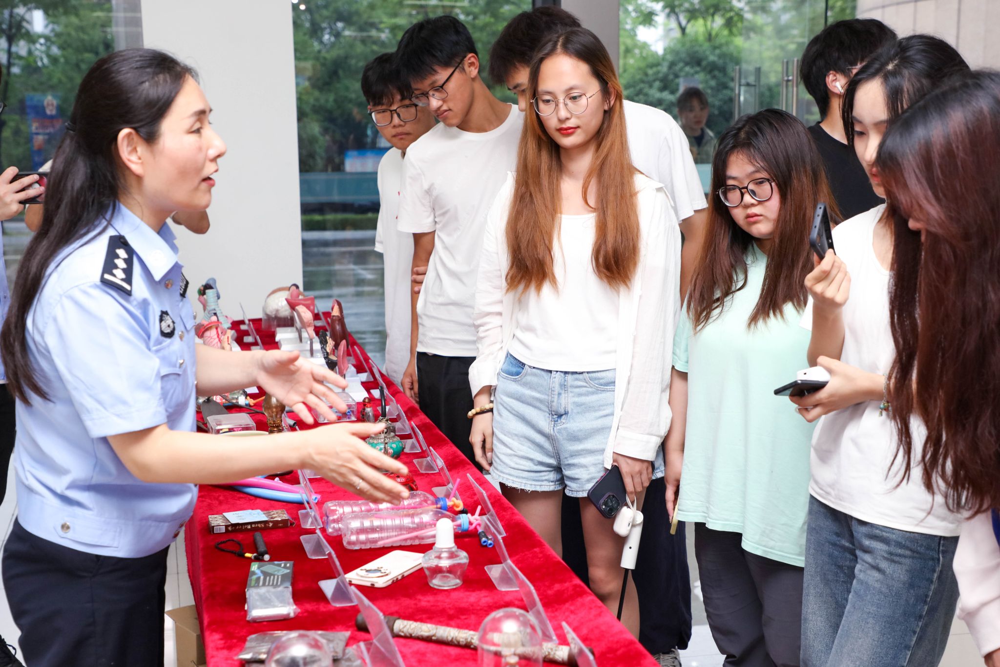 专题活动围绕禁毒、消防、反电诈、反恐等安全内容,精心安排了专题讲座、展板展示、发放宣传材料、有奖竞答、观看安全主题电影等环节。活动现场,李琳向师生展示了毒品仿真模型,介绍了新型毒品的形状特征,普及了禁毒知识,引导师生提高识毒、防毒和拒毒意识。“江宁婆婆”王海丁结合真实案例,深入浅出地讲解了AI换脸诈骗等新型电信网络诈骗的防范方式,提升了师生的识骗防骗能力。我校平安志愿者代表进行了庄严宣誓,表达了用心守护校园、共建平安校园的决心。师生还集体观看了禁毒主题电影《生死下一秒》。