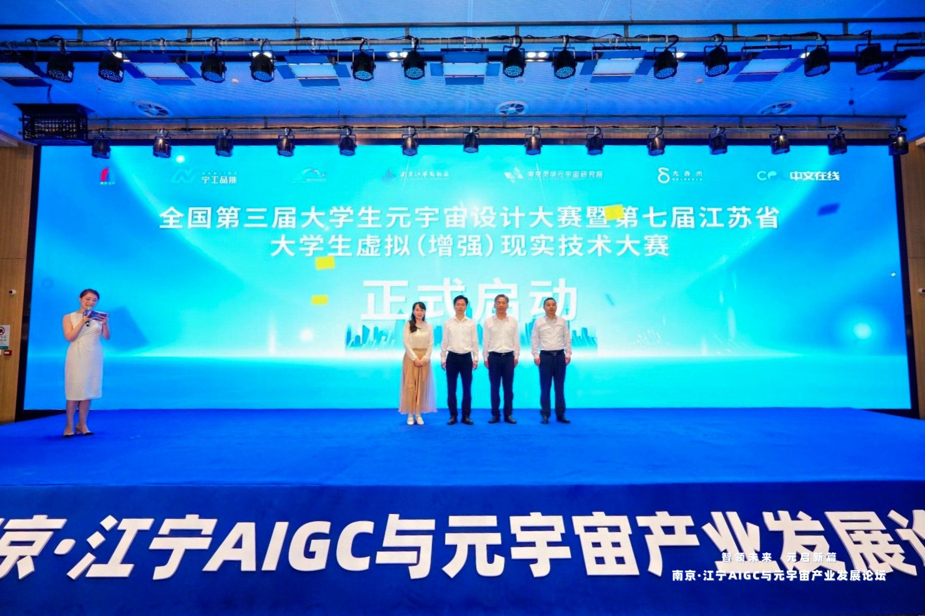 6月25日,南京市江宁区举办南京·江宁 AIGC与元宇宙产业发展论坛暨元宇宙供需对接大会。我校副校长叶智锐代表学校出席,为全国第二届大学生元宇宙设计大赛暨第六届江苏省大学生虚拟(增强)现实技术大赛获奖选手颁奖,并与嘉宾共同启动新一届大赛。