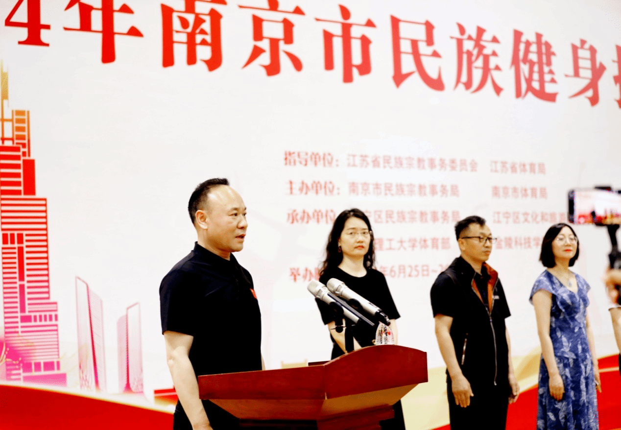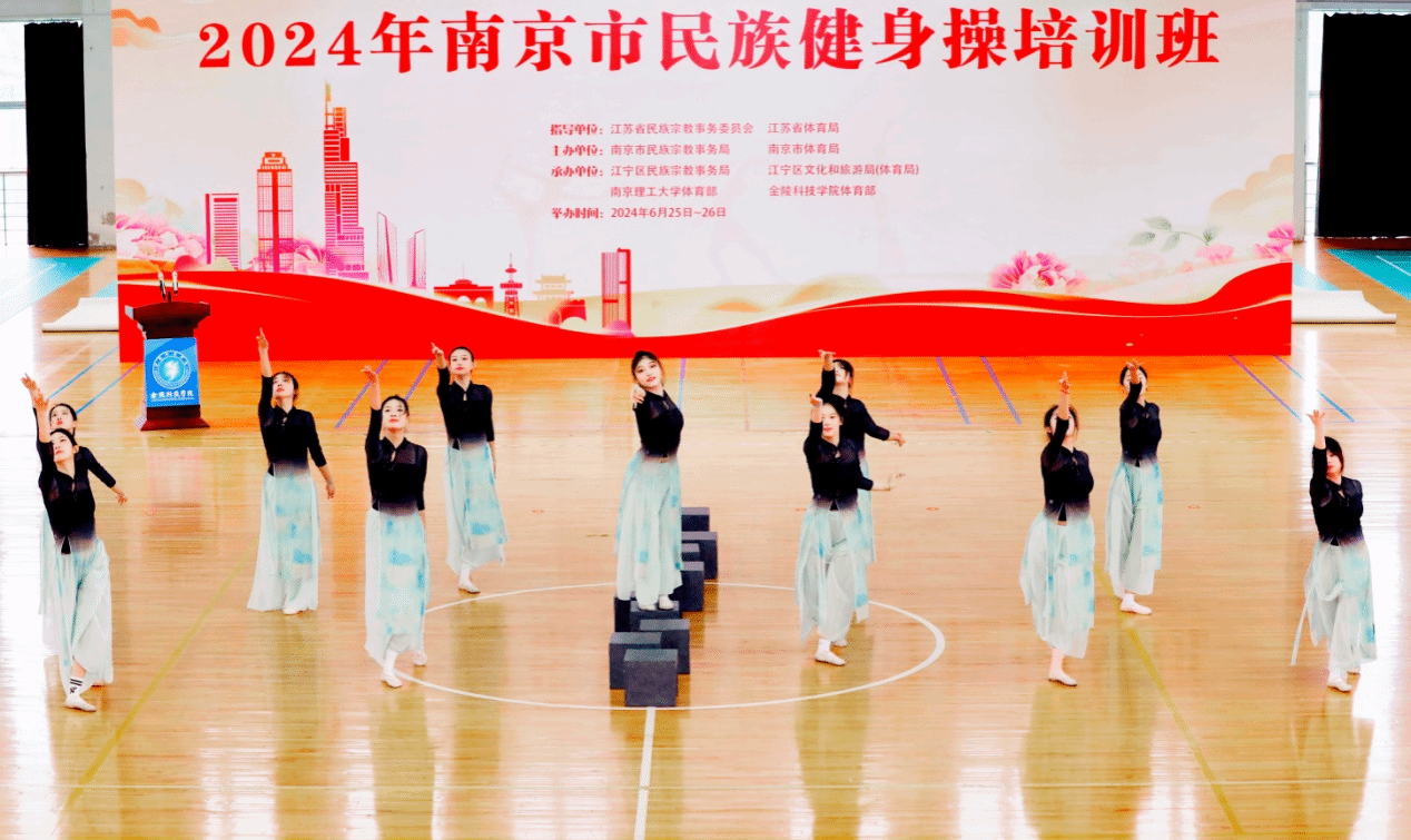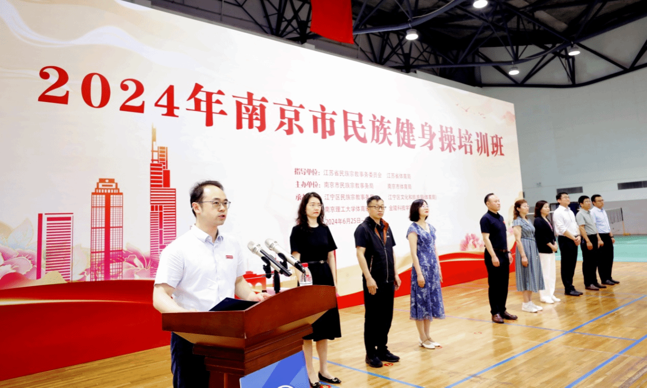 6月25日上午,由江苏省民宗委、省体育局指导,南京市民宗局、市体育局共同主办的2024年南京市民族健身操培训班在我校体育馆开班。校党委副书记单晓峰致欢迎辞,南京市民宗局党组成员、副局长张颖华讲话,江苏省民宗委民族一处副处长黎伟平宣布开班并作开班动员。开班仪式由我校党委常委、统战部部长黄洋主持。