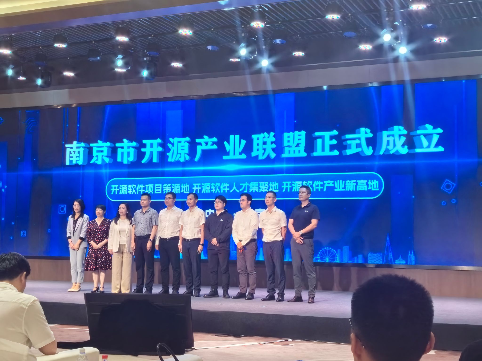2024南京开源生态发展交流活动邀请行业大咖围绕开源生态发展深入交流,旨在凝聚开源生态共识理念、共商开源生态领域合作、共享开源生态发展成果。活动现场举行了南京市开源产业联盟成立揭牌仪式和开源校园行紫金行动启动仪式,我校是南京市开源产业联盟联合发起单位和人才工作组组长单位,副校长张燕代表学校参加联盟成立揭牌仪式。
