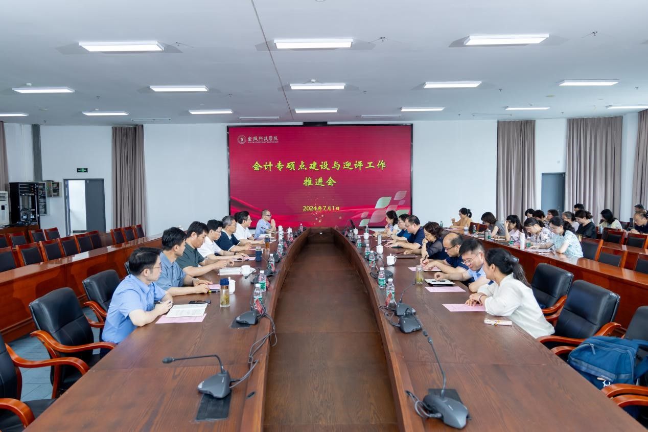 7月1日下午,我校在科技楼3号楼110会议室举行会计专硕点建设与迎评工作推进会。副校长叶智锐出席会议并讲话,原副校长葛军及研究生处、商学院相关负责人,会计专硕全体硕导、授课教师参加会议。