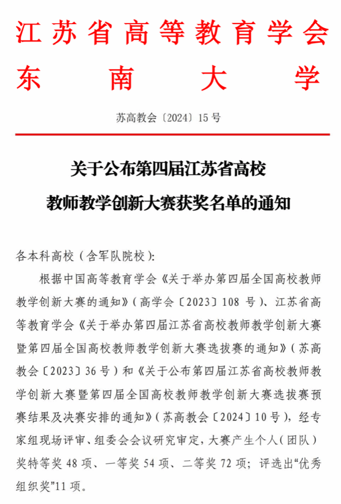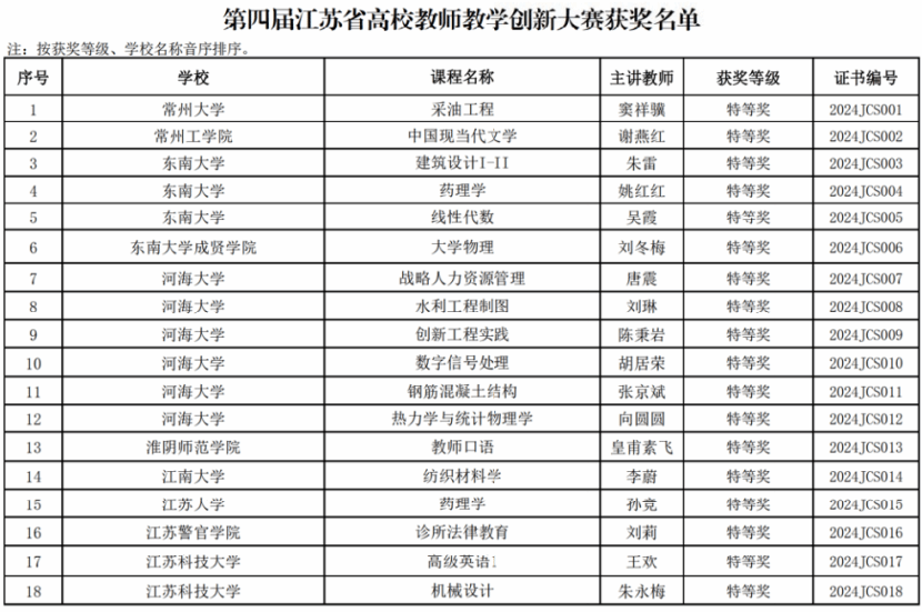 日前,江苏省高等教育学会正式公布评审结果(苏高教会〔2024〕15号、苏高教会〔2024〕32号文),我校在第四届江苏省高校教师教学创新大赛(本科)暨第四届全国高校教师教学创新大赛选拔赛、第四届江苏省高校教师教学创新大赛产教融合赛道及新教师赛道中喜获佳绩。艺术学院范丽、建筑工程学院李恩康、机电工程学院智淑亚、理学院朱心阳4位老师经过激烈角逐后,分别荣获产教融合赛道一等奖、新教师赛道一等奖、正高组二等奖、中级及以下组二等奖。