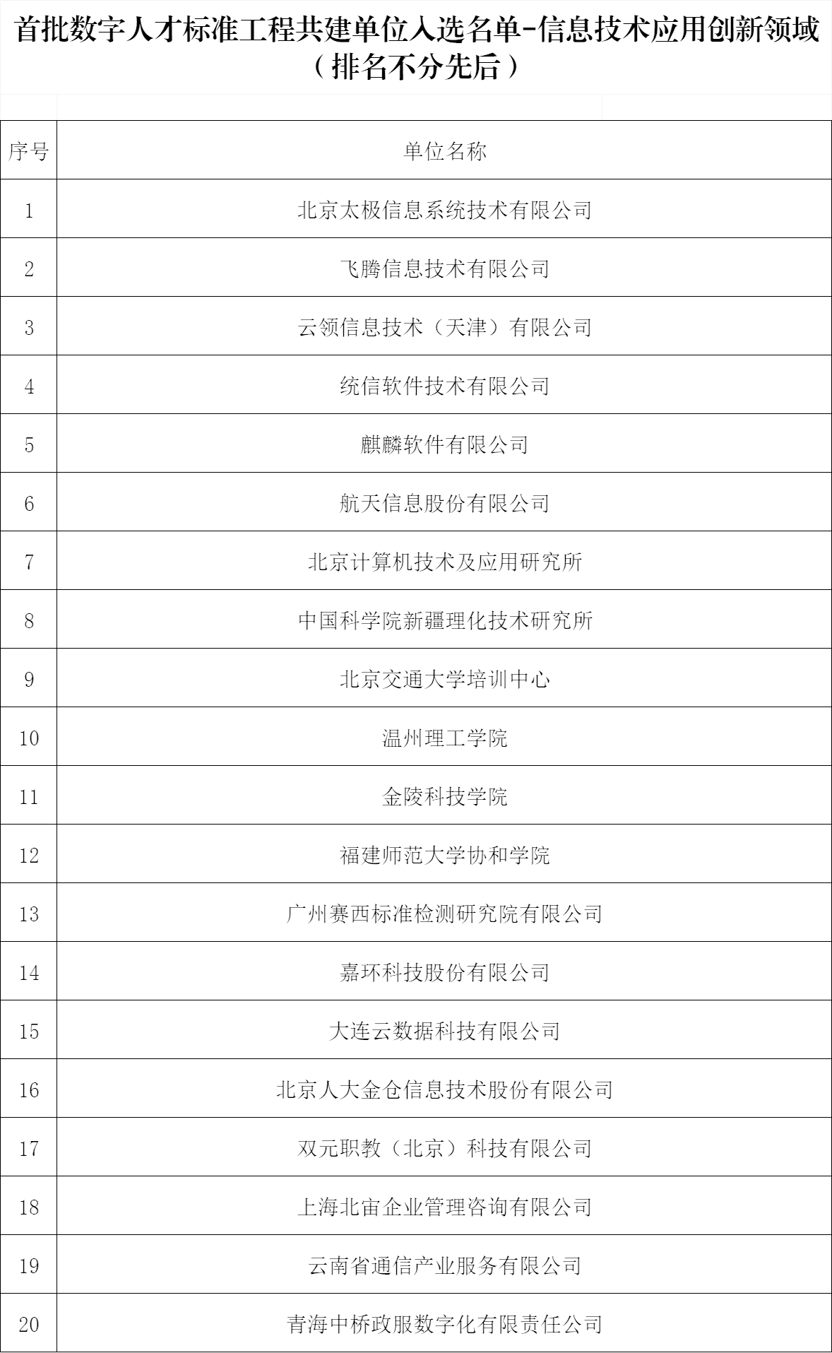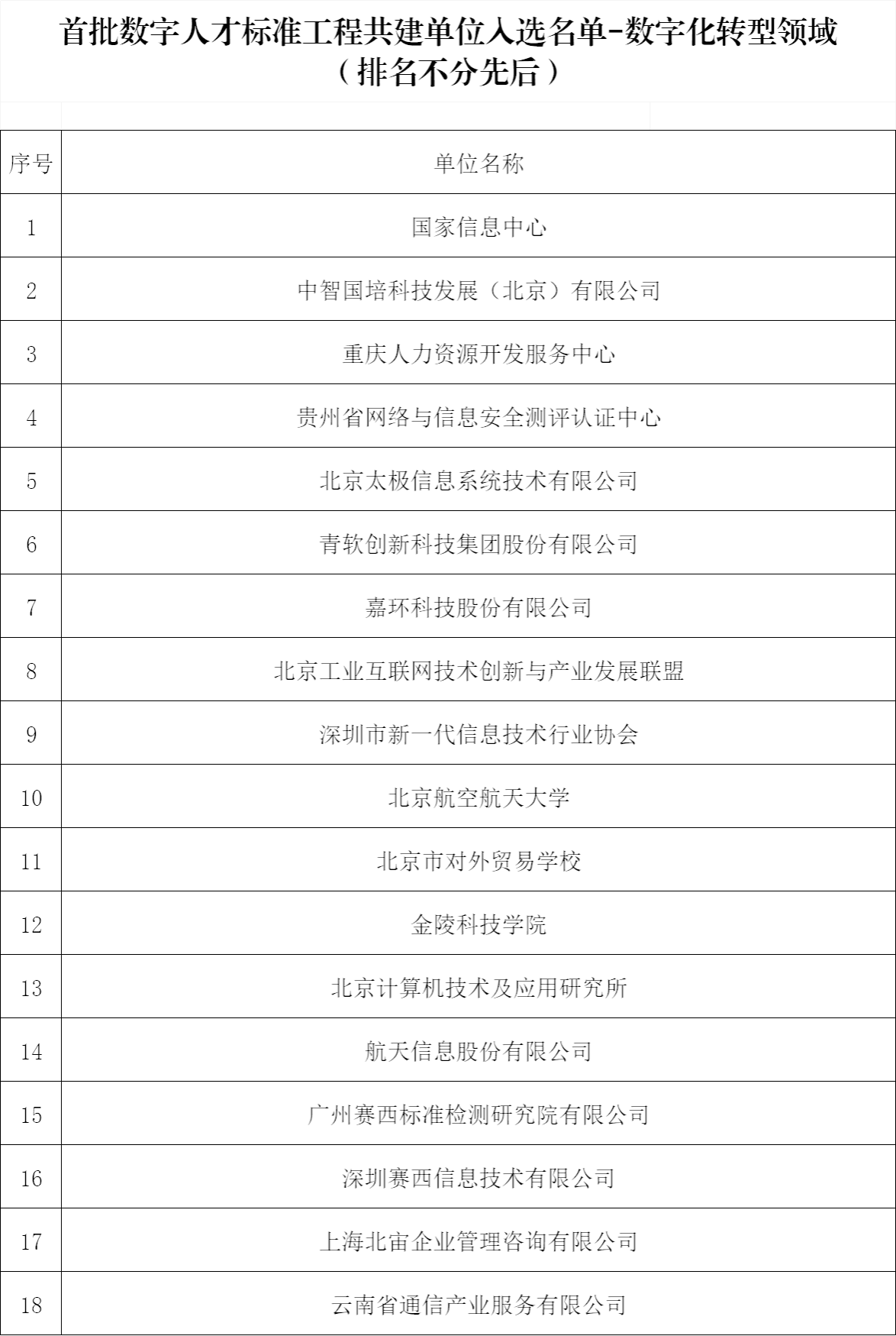 7月19日,工业和信息化部电子工业标准化研究院公布首批“数字人才标准工程”共建单位入选名单,我校成功入选人工智能、大数据、信息技术应用创新、数字化转型等4个领域的标准共建单位。我校数据科学与智慧软件江苏省高校重点实验室、江苏省信息分析工程研究中心、开源信创产教融合创新实践教育基地合作完成数字人才标准的研制任务。