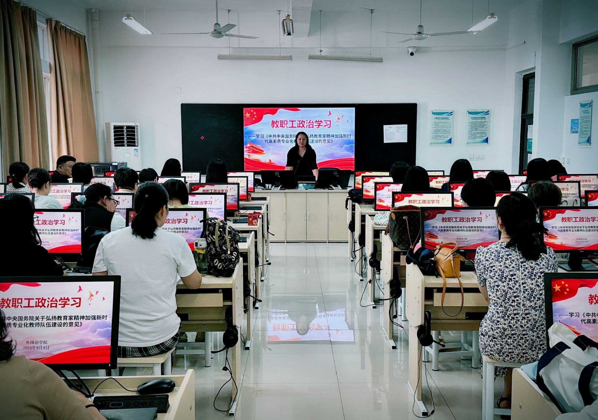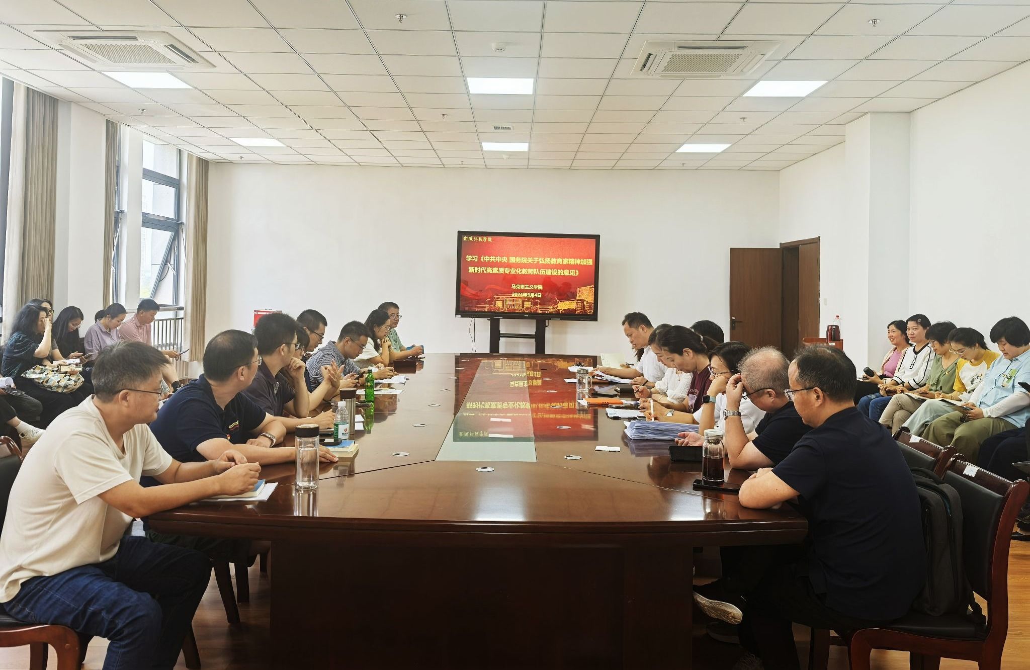 9月4日下午,我校各二级党组织组织全体教职工开展教育家精神专题学习,重点学习了《中共中央 国务院关于弘扬教育家精神加强新时代高素质专业化教师队伍建设的意见》。