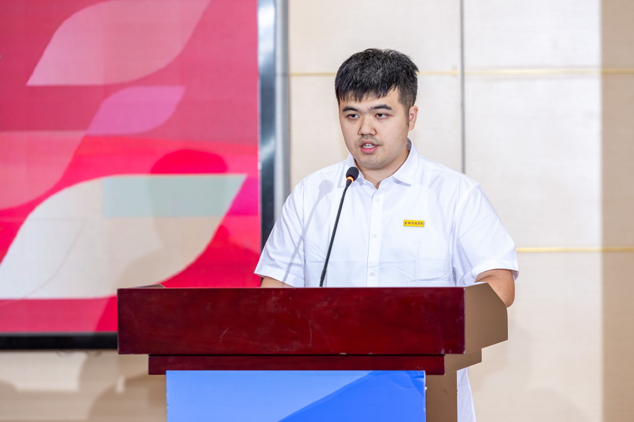 典礼上,全体校领导为新生代表佩戴了校徽。