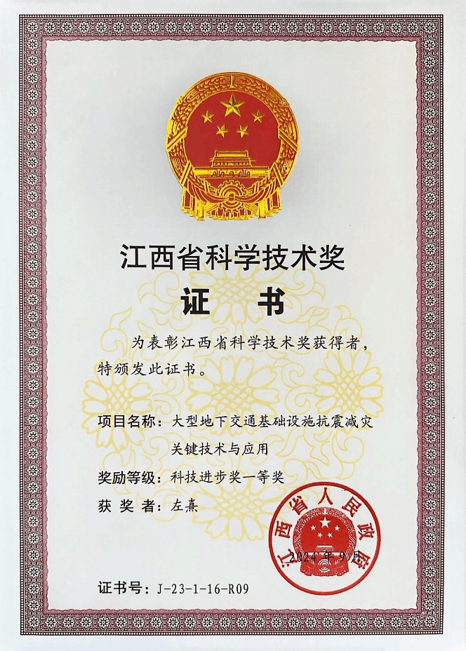 近日,江西省人民政府公布了江西省科学技术奖的获奖名单。我校建筑工程学院左熹教授参与的《大型地下交通基础设施抗震减灾关键技术与应用》项目获得科技进步一等奖,这是我校首次荣获省级科学技术一等奖。