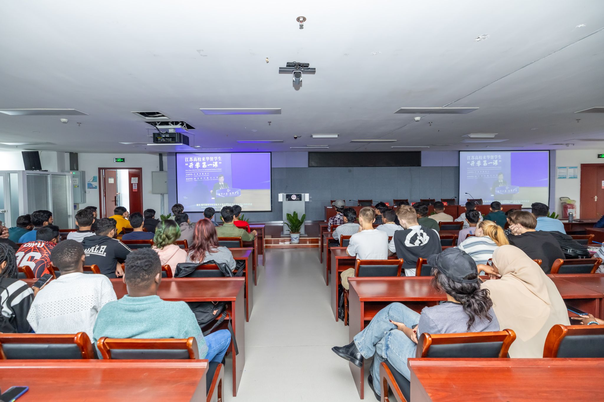 为保障留学生入校后的学习生活,后勤管理处、实验室与设备管理处、教务处、学生工作处、财务处、人力资源处、保卫处、后勤实业总公司、信息化建设与管理中心等部门顺利完成教室和学生宿舍改造出新、管理人员配备等条件保障工作。