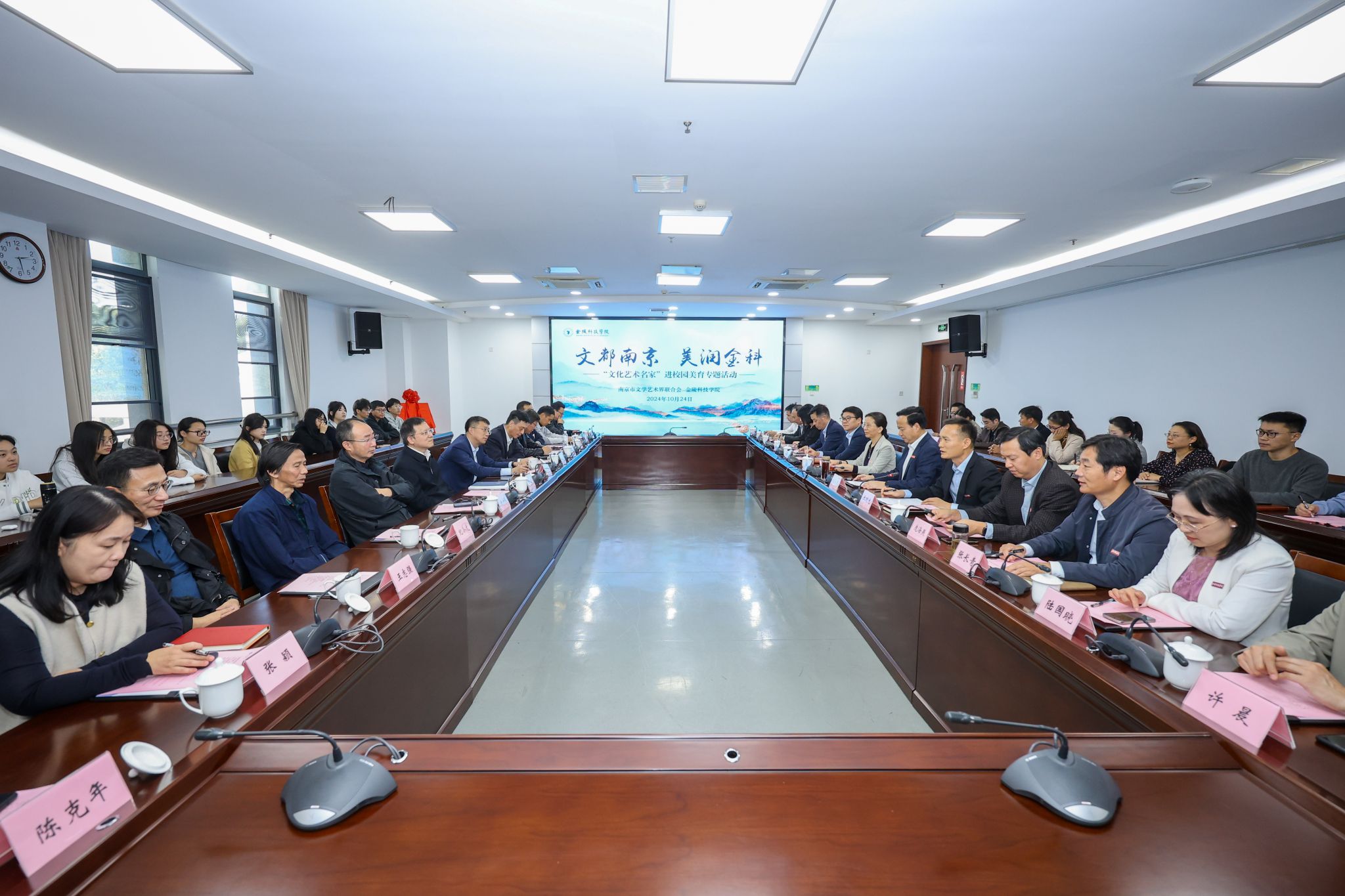 陈政代表南京市文联对学校盛情相邀共话南京高校美育事业新愿景致以衷心感谢。他表示,南京市文联始终把满足人民群众的精神文化需求作为文艺和文艺工作者的出发点和落脚点,在丰富高品质文艺供给,提高优质文艺资源均衡性可及性上精准发力;在培育高水平文艺人才,造就德艺双馨的灵魂工程师上持续用力;在整合城市空间,优化拓展美育实践阵地上凝聚合力。金科院通过设计美育精品课程、开设美育大讲堂、深化美育教学改革、拓展美育实践路径等方面的探索,为南京文艺界和教育界携手发展新时代美育工作创造了更多可能。南京市文联也将和学校持续开展“文化艺术名家”进校园活动,联合开展美育课程,共建美育实践工作坊,积极探索打造“文联+高校”的美育新品牌,助力南京美育之城建设,为构建“全民、全龄、全域、全时”的社会美育大格局同心奋进笃行。