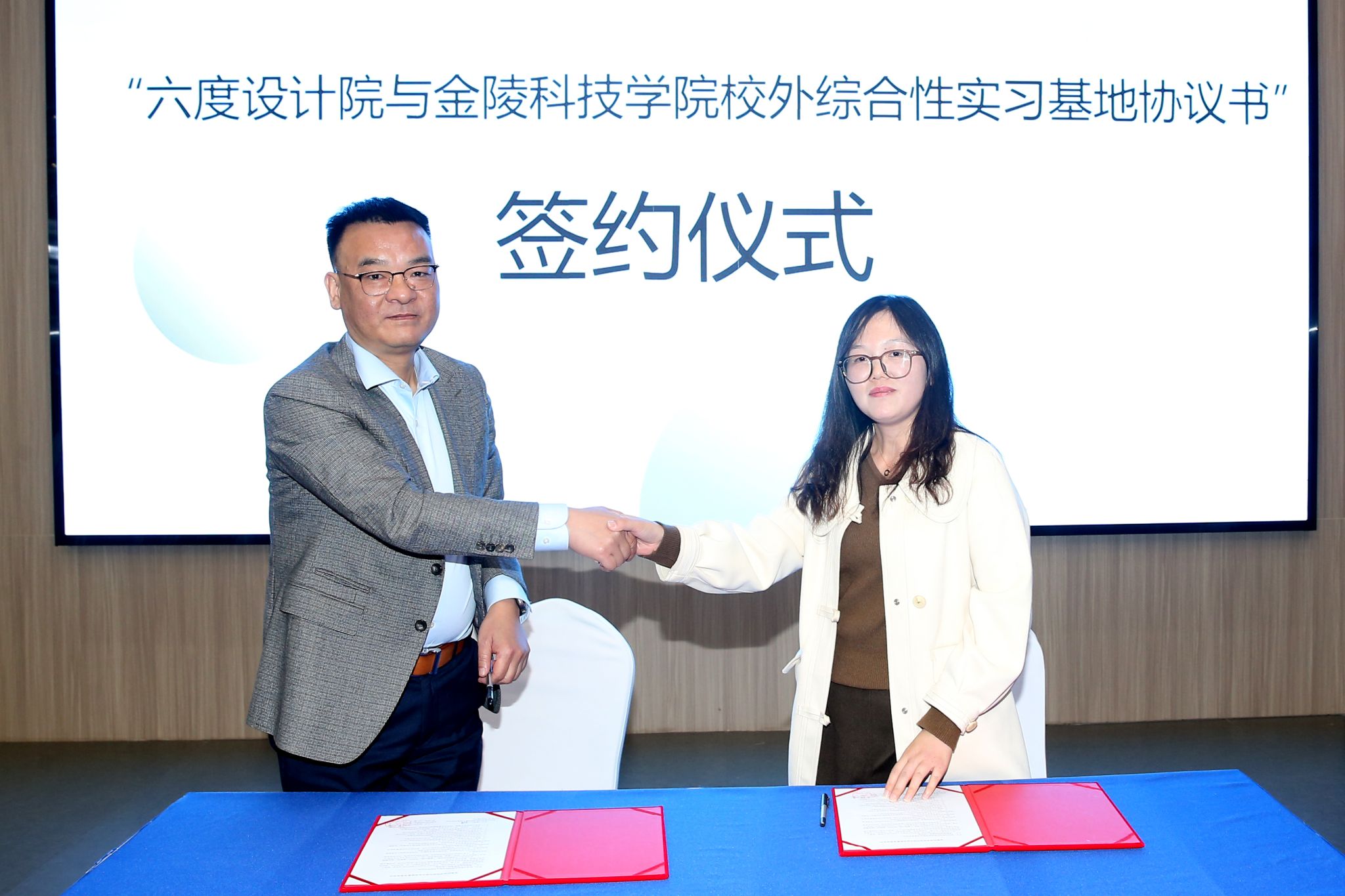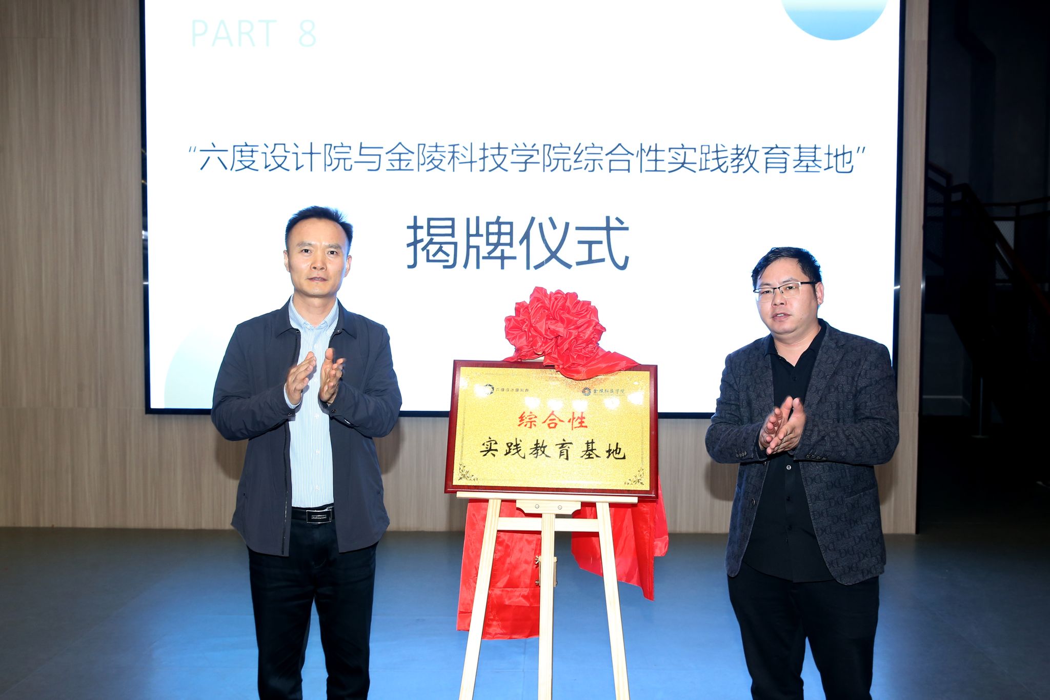 访企拓岗期间,双方签订了综合性实践基地协议并进行了揭牌。我校人员参观了公司设计、施工的溧水飞燕文化产业街区工业记忆馆项目。