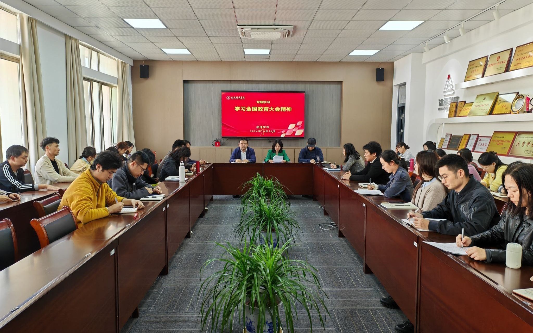10月30日下午,我校各二级党组织利用教职工政治理论学习时间组织全体教职工专题学习全国教育大会精神。