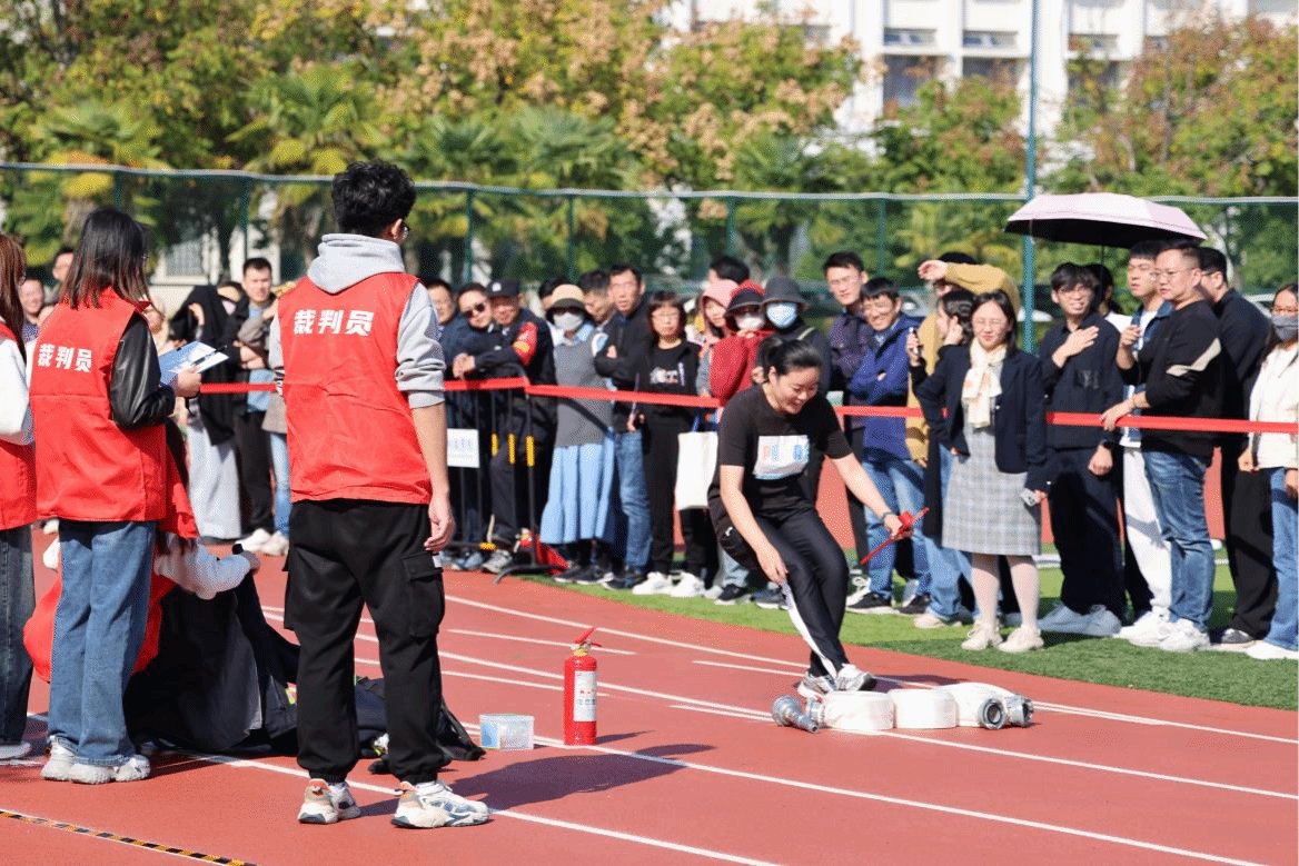 为认真贯彻“预防为主、防消结合”的消防工作方针,严格落实消防安全主体责任,加强消防安全宣传教育,树牢消防安全意识,提升校园消防安全管理能力,从严从紧从实抓好消防安全各项工作,不断巩固高质量平安校园建设成果。10月30日,我校在江宁校区南区体育场举办了第三届“安康杯”教职工消防趣味运动会。