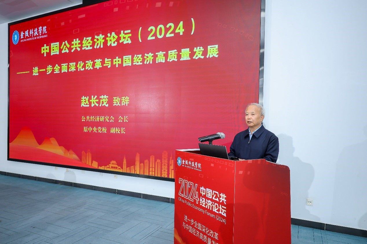赵长茂在致辞中对我校的精心准备和辛劳付出表示衷心感谢,对中共江苏省委党校(江苏行政学院)、江苏社科院等单位领导专家的出席表示衷心感谢。他指出,本次论坛具有特殊意义,是公共经济研究会成立以来第一次在京外举办论坛,也是贯彻落实党的二十届三中全会精神的重要举措。论坛主题抓住了进一步全面深化改革的要害,为实现中国式现代化出谋划策,具有重要理论价值和实践指导意义。