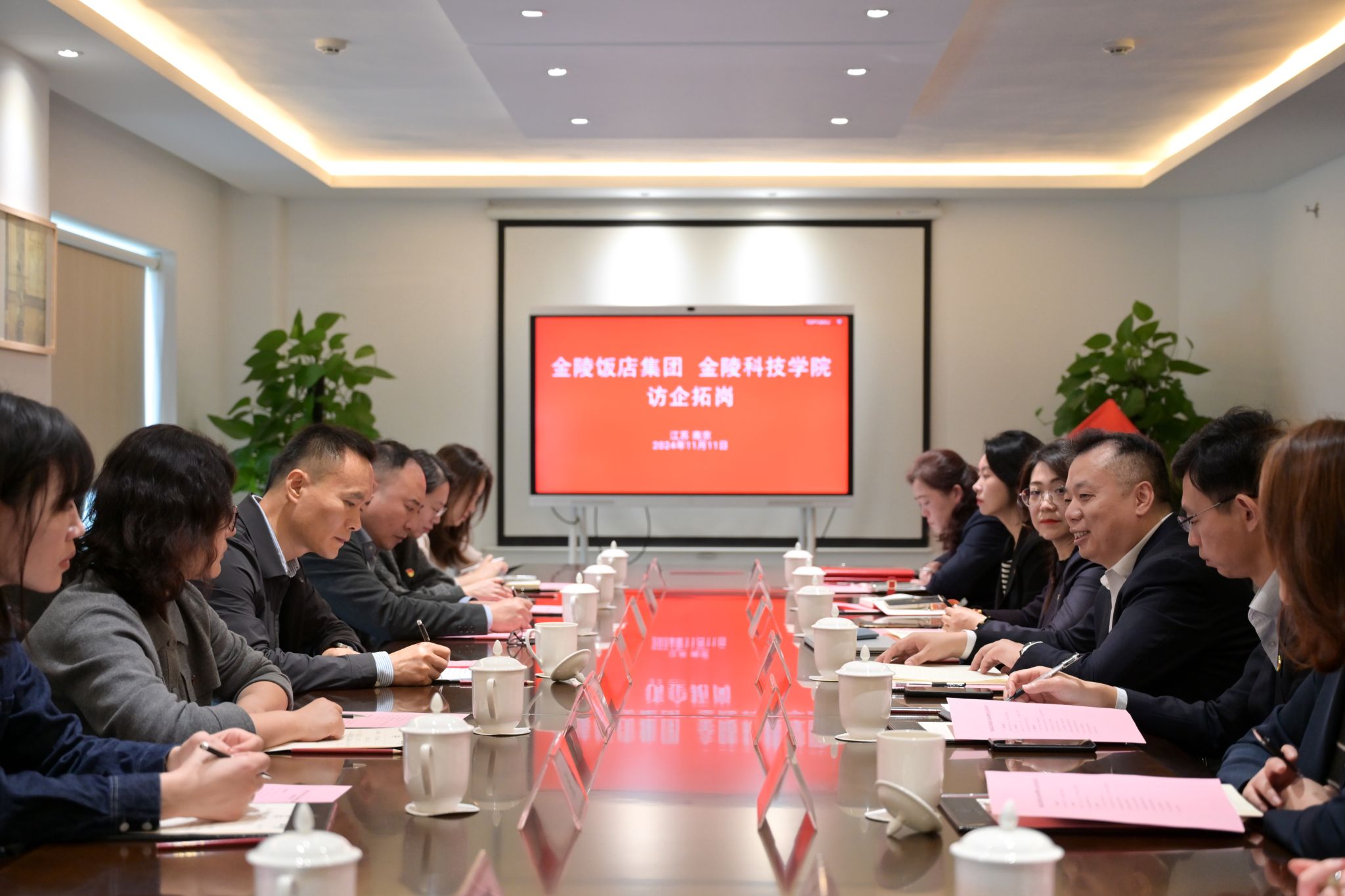 为发挥党建引领作用,加大校企合作力度,促进高质量充分就业,11月11日,副校长王延光带领人文学院相关负责人、教师代表到金陵饭店集团开展访企拓岗活动暨党支部共建活动。金陵饭店集团副书记张学义、党委组织部副部长秦琅琅、股份公司第三党支部书记沈雪婷、党委组织部经理柯曼丽等人参加了活动。
