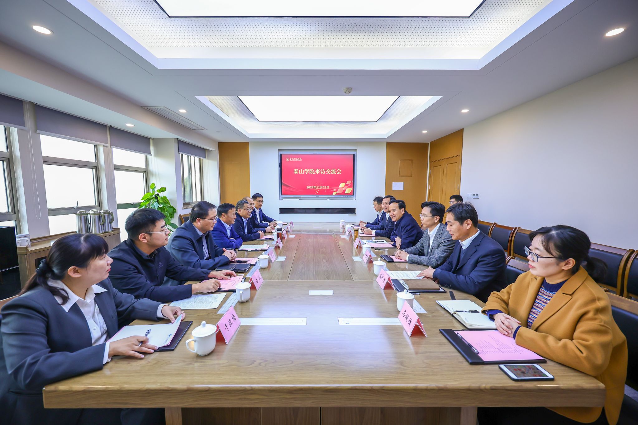 11月22日,泰山学院校长彭淑贞带领副校长李峰及计划财务处、网络与教育技术中心、学科建设与研究生处等相关部门负责人来我校调研,校长刘永彪、副校长叶智锐参加调研交流。