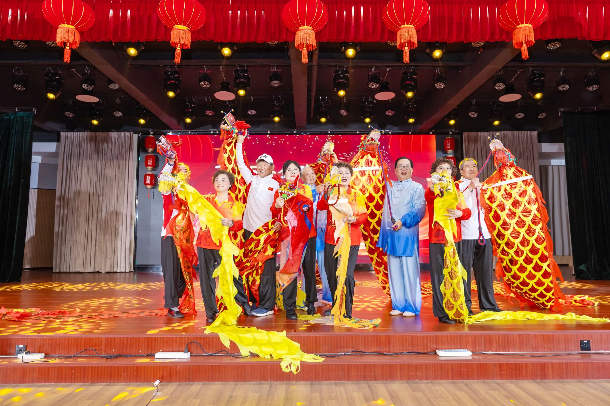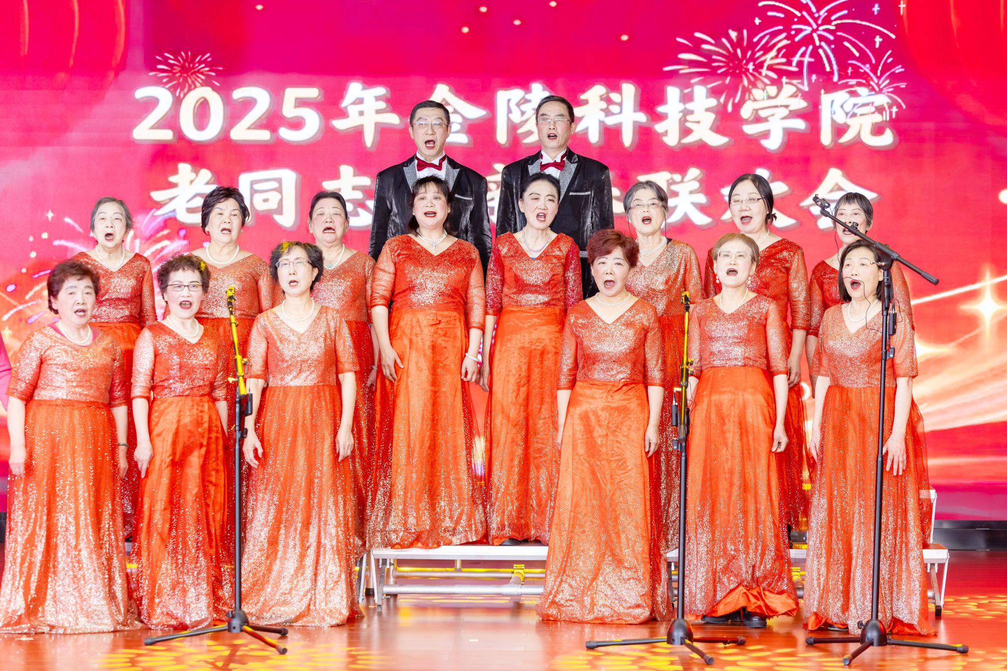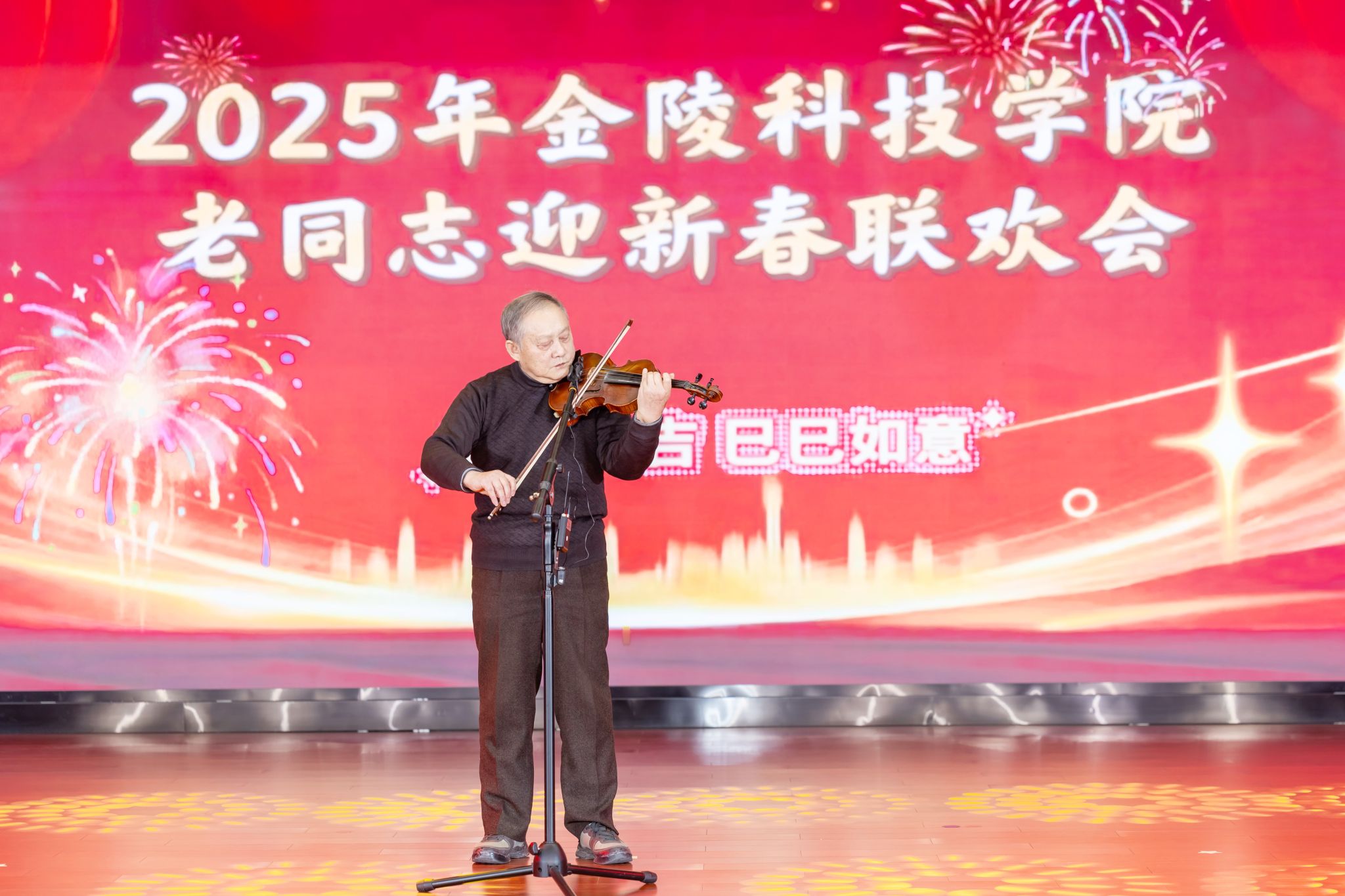 老同志迎新春联欢会在大合唱《满城烟花》中拉开帷幕,健身气功、舞蹈、走秀、小提琴独奏、小合唱、个人独唱、太极拳、健身龙表演等一个个节目精彩纷呈,整场联欢会暖意融融、气氛热烈、掌声不绝、笑声连绵,洋溢着喜庆欢乐的氛围。老同志们用歌声、舞姿表达了他们对美好生活的无限热爱,充分展现了我校离退休老同志积极向上,老有所教、老有所学、老有所为、老有所乐的精神风貌。