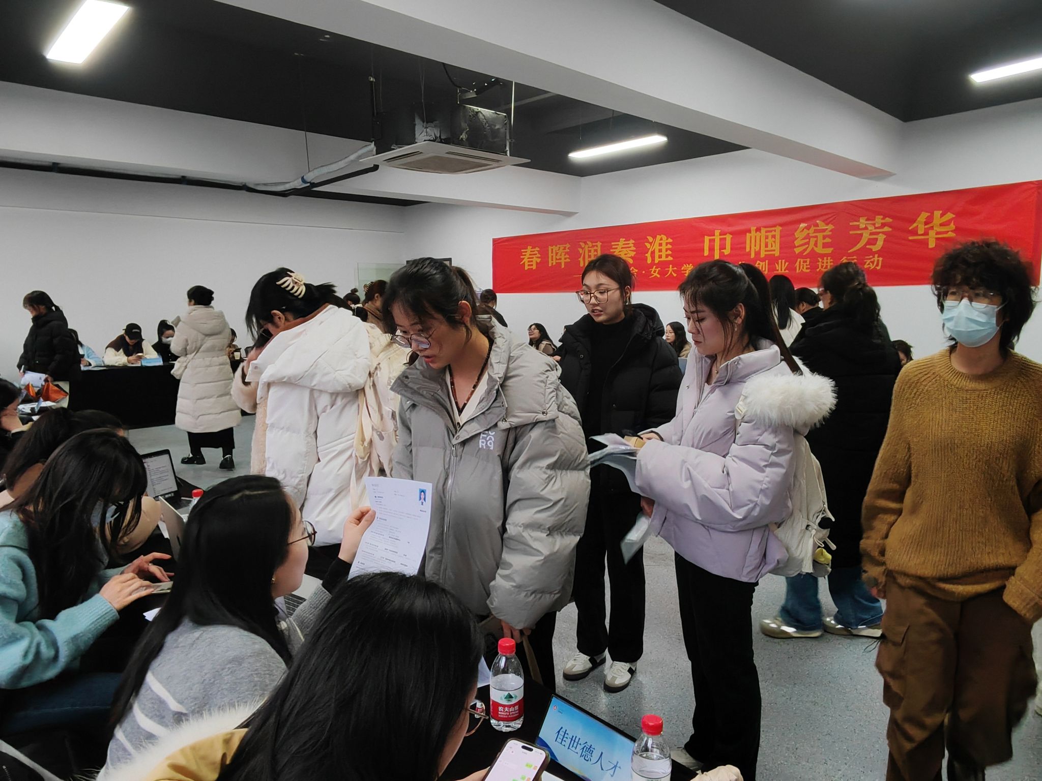 近日,秦淮区妇联在我校秦淮硅巷大学科技园举办“春晖润秦淮 巾帼绽芳华——校企融合·女大学生就业创业促进行动”。市妇联党组书记、主席吴曦全程参加活动,秦淮区委常委、常务副区长、市南部新城管委会党组副书记、副主任顾安国到场致辞。副校长顾晓燕应邀参加“校企融合·女大学生就业创业服务站”项目启动仪式,校妇联带领20余名女性师生参加活动。