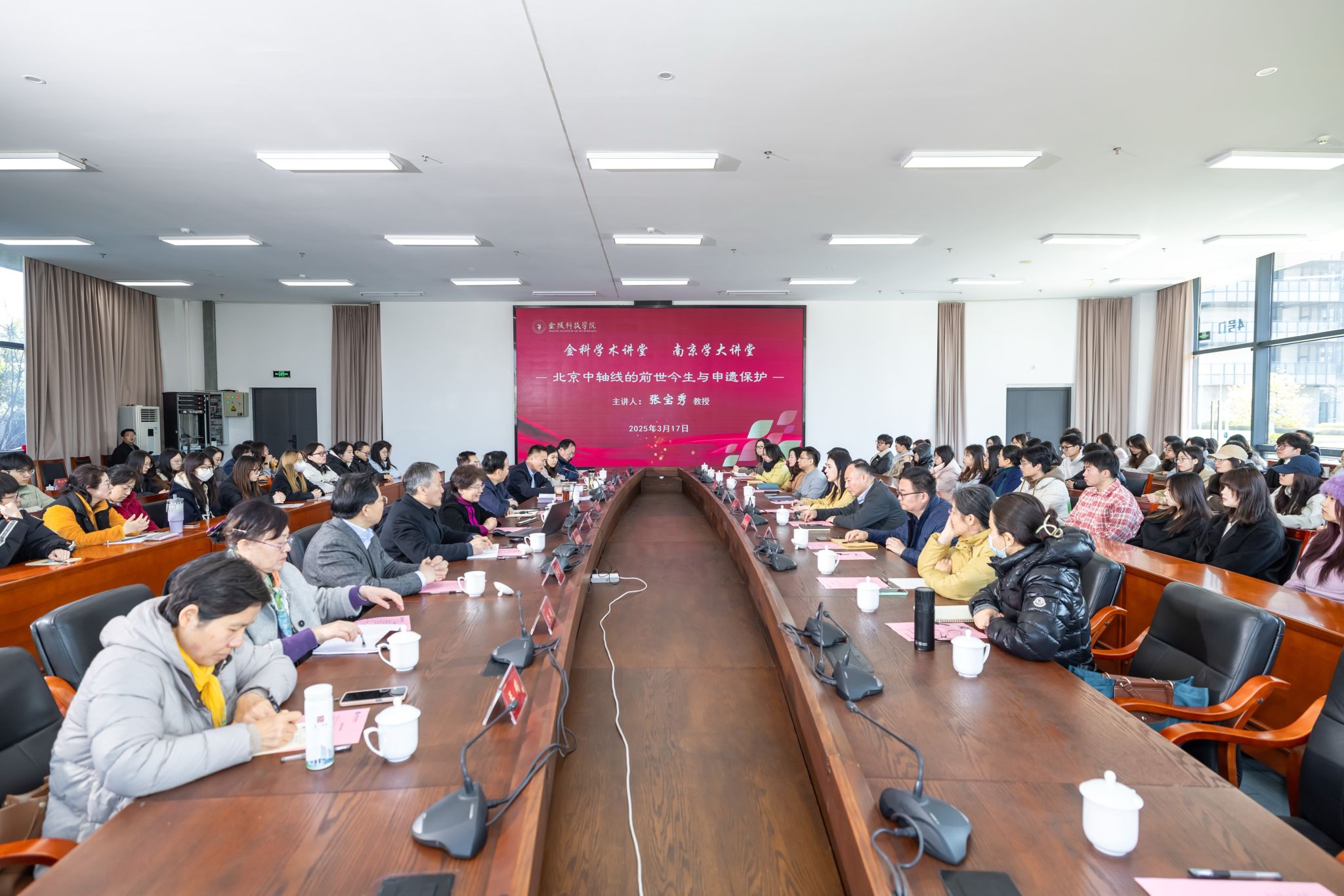 3月17日上午,我校邀请北京学研究所所长张宝秀教授作客金科学术讲堂。讲座由科技处、教师发展中心主办,人文学院承办。市委宣传部二级巡视员颜一平、南京市南京学研究会会长卢海鸣、南京市地方志办公室二级巡视员柳云飞、南京出版社执行总编辑徐智等专家和领导,我校校长刘永彪、副校长王延光及相关部门学院负责人,人文学院、建筑工程学院、艺术学院等师生参加讲座。讲座由王延光主持。
