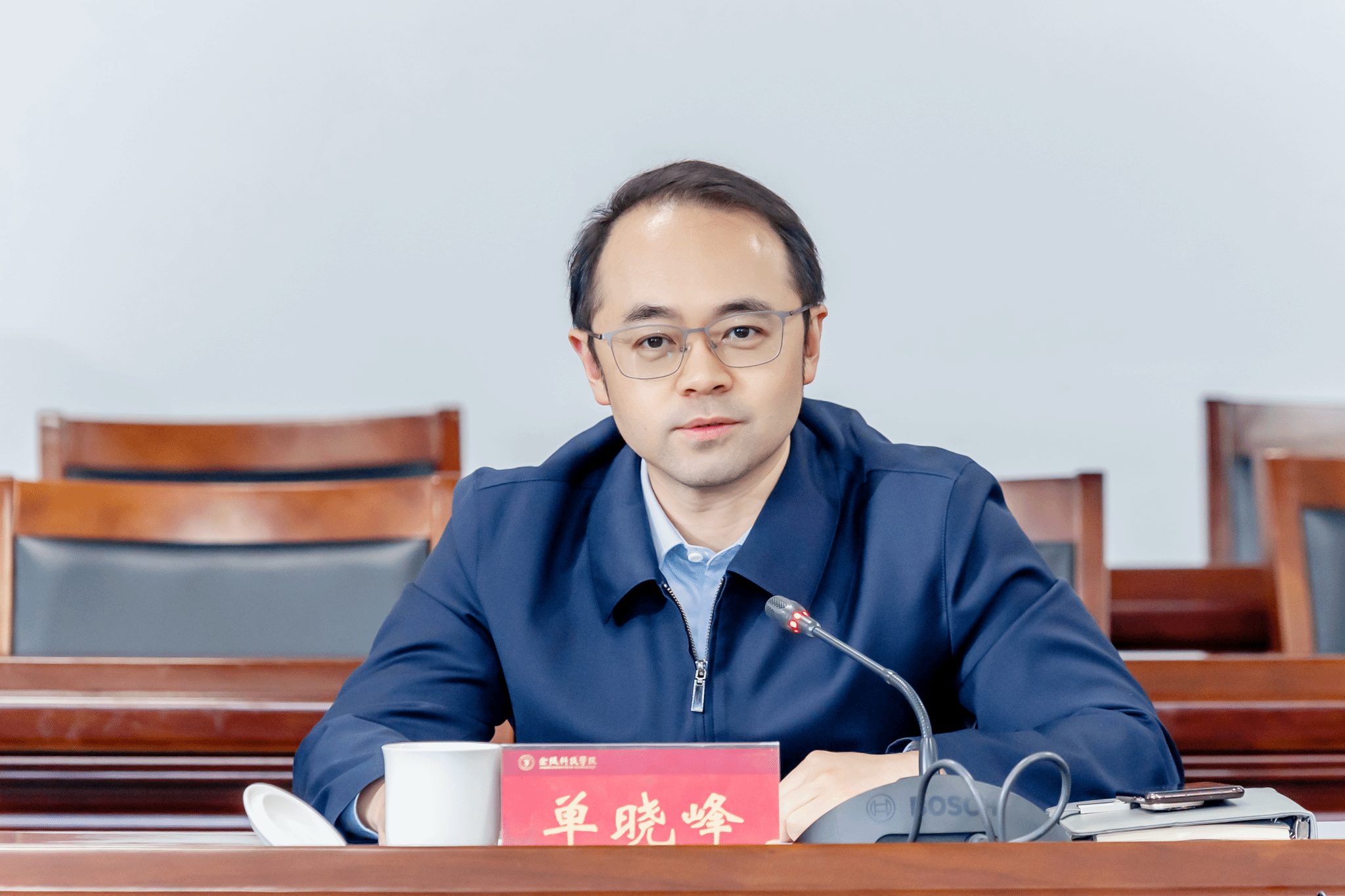 单晓峰在讲话中指出,创新创业教育是高校实现立德树人任务的关键,他提出四点要求:一是项目要实现“颠覆性变革”,需超越项目本身,突破仅限于作品优化的固有思维模式,转换角色定位,紧密围绕国家战略需求构建项目的价值体系,坚持市场导向。二是要高度重视校内外专家意见,实施并加速项目升级。建立“问题——对策——验证”闭环机制,深入理解大赛要求,进行技术、商业模式、应用场景等方面的迭代升级。三是构建多维立体展示体系,确保学术严谨性与传播有效性统一。PPT设计遵循“问题导向——价值阐释——路径展示”逻辑,技术阐释深入浅出,运用可视化手段,通过真实案例打造引人入胜的叙事逻辑,展现团队创新素养。四是加强党政联合推进机制,二级学院负责人要高度重视赛事筹备,视为立德树人、人才培养的关键平台,建立跨领域协同创新机制,集中全校资源打造精品项目。