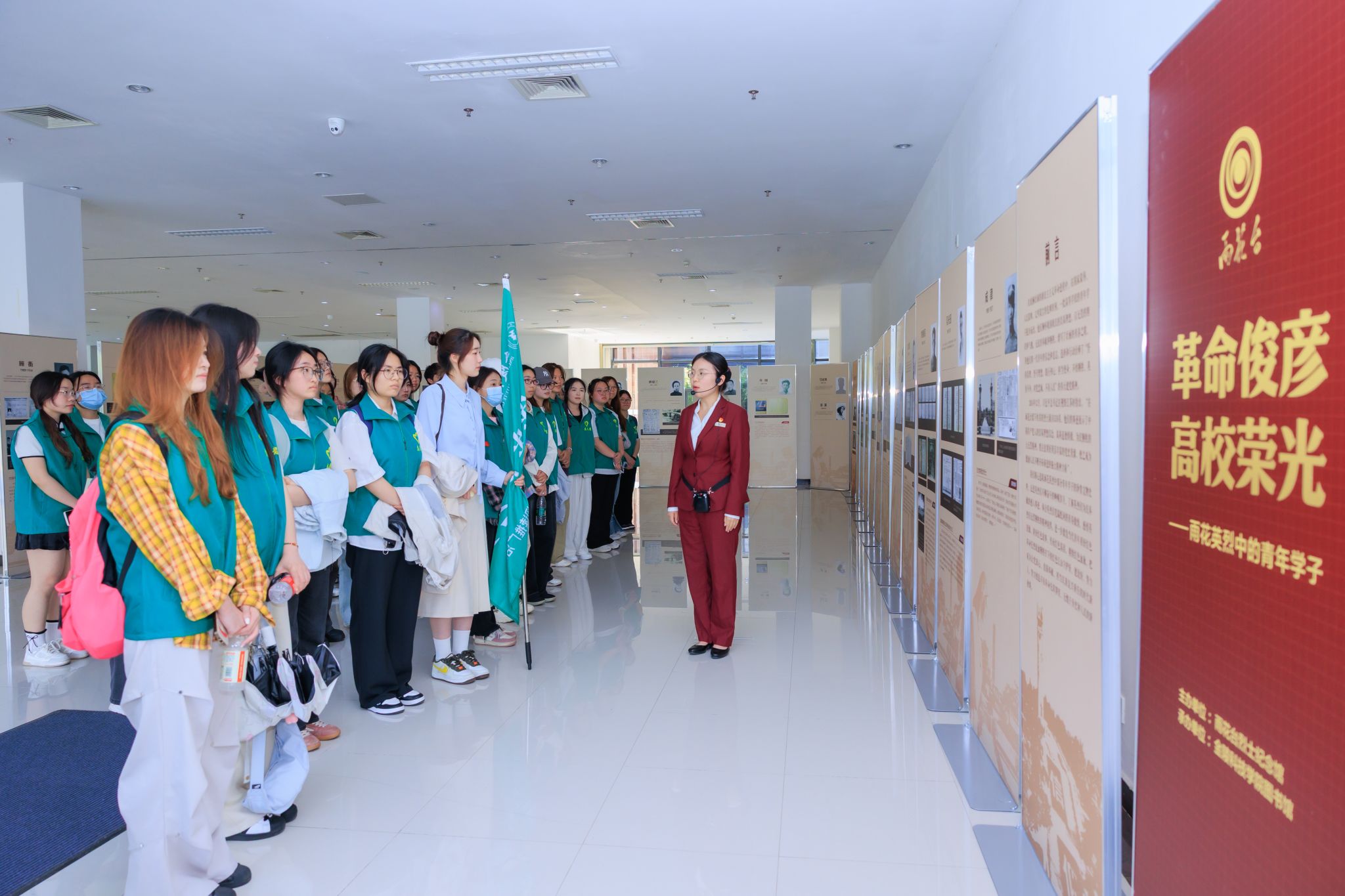 活动举办期间,南京市雨花台烈士陵园管理局社会教育处龚姝彤老师带领师生代表共同参观了正在我校举行的“革命俊彦 高校荣光——雨花英烈中的青年学子”主题展。