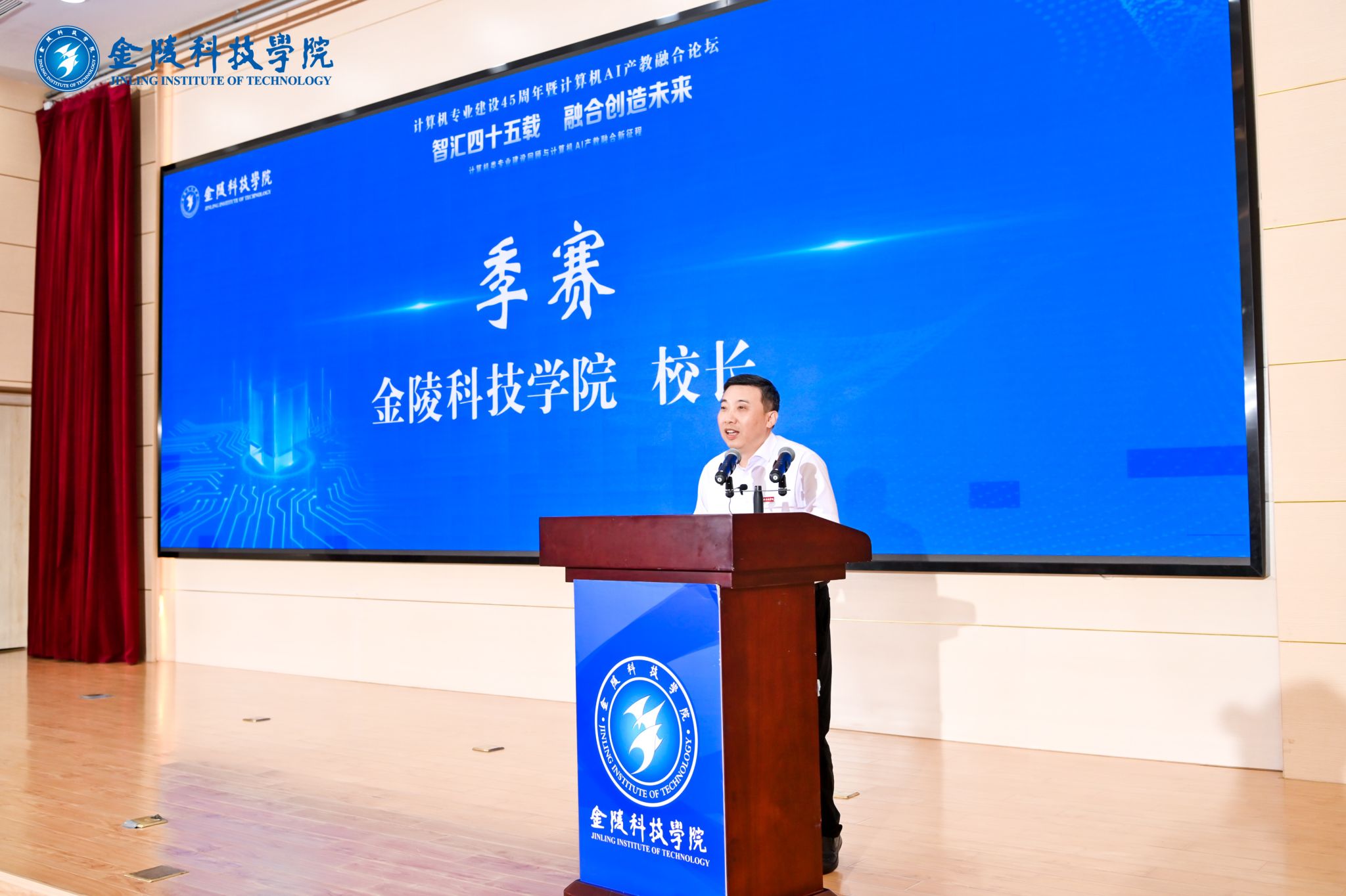 在“相约金科 遇见美好”校园开放日之际,为总结计算机类专业建设经验,推动人工智能领域产教融合创新发展,6月21日,我校在科技楼报告厅举行“智汇四十五载 融合创造未来”计算机类专业建设45周年暨计算机+AI产教融合论坛。校长季赛教授、副校长张燕教授、副校长高永祥教授,我校计算机类专业设立45年来的校友代表,以及计算机工程学院、软件工程学院、智能科学与控制工程学院、网络安全学院、电子信息工程学院、国际教育学院、图书馆等单位的师生代表共计200余人参加论坛。张燕主持开幕式。