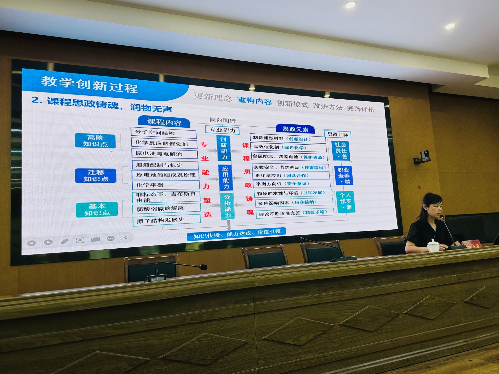 为进一步落实审核评估整改要求,更好地组织学校2025年教师教学奖评选活动,加强教师教学能力建设,提升课堂教学效果,6月25日下午,教学质量评估中心联合教师发展中心在行政楼报告厅举行教师教学创新大赛示范课观摩活动,江苏省首届教师教学创新大赛特等奖获得者、理学院朱庆莉副教授应邀上示范课。教师发展中心、教学质量评估中心相关负责人,各院部拟参加今年校赛的教师代表和2024年新引进的专任教师代表50余人参加观摩活动。副校长顾晓燕参加并讲话。