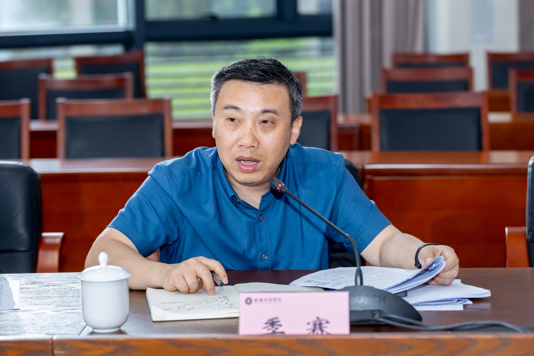 6月27日下午,我校在3号科技楼110会议室召开学位授权点专项核验工作推进会。校长季赛、校党委副书记单晓峰,研究生处、人力资源处、科技处、实验室与设备管理处等职能部门负责人,电子信息、土木水利、会计三个学位点牵头学院负责人等参加会议。会议由单晓峰主持。