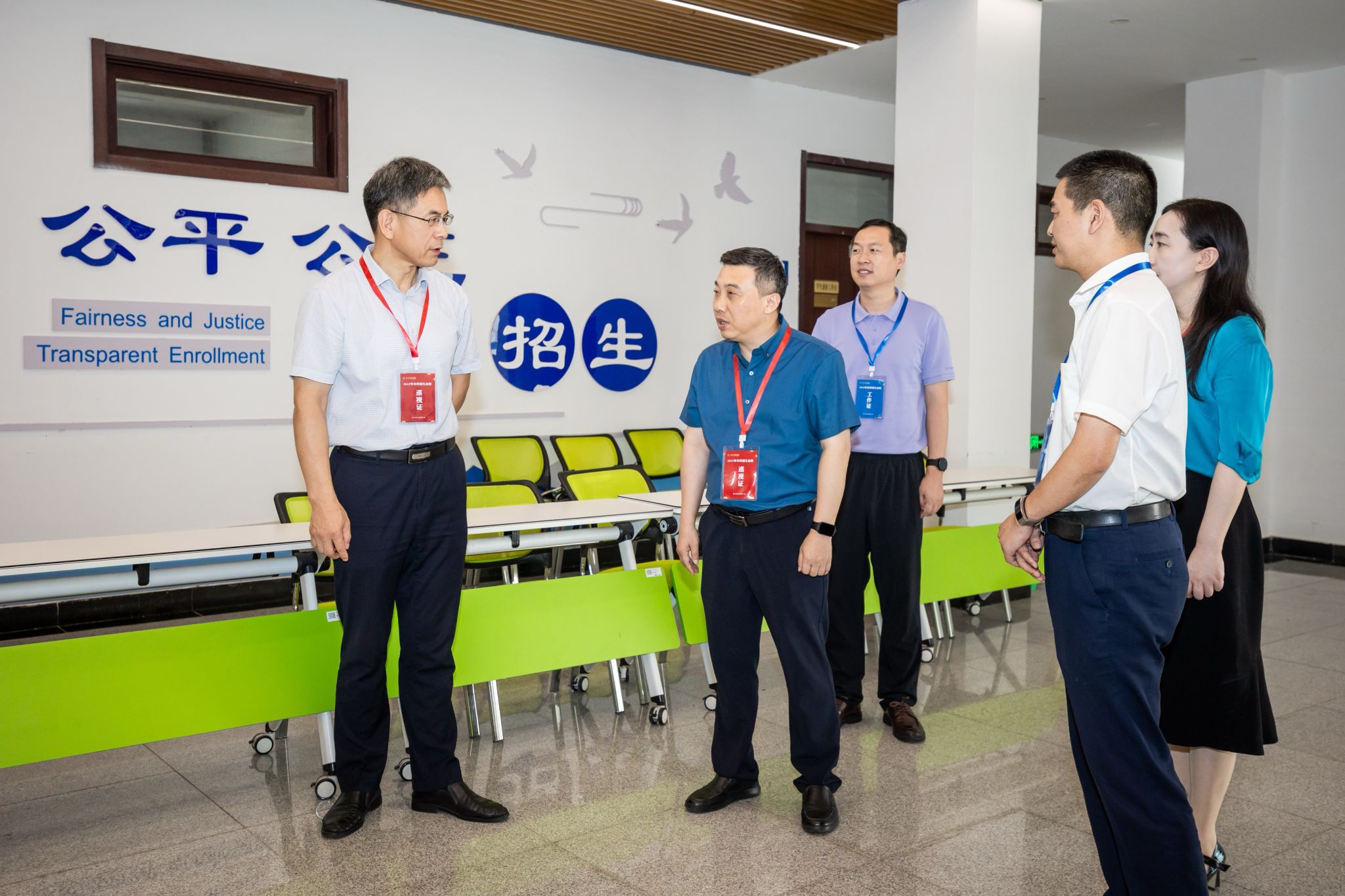 7月18日下午,校党委书记刘志远、校长季赛到学校本科招生录取工作现场,调研指导2025年招生录取工作,亲切慰问招生录取工作人员。副校长顾晓燕、校长办公室相关人员陪同调研。