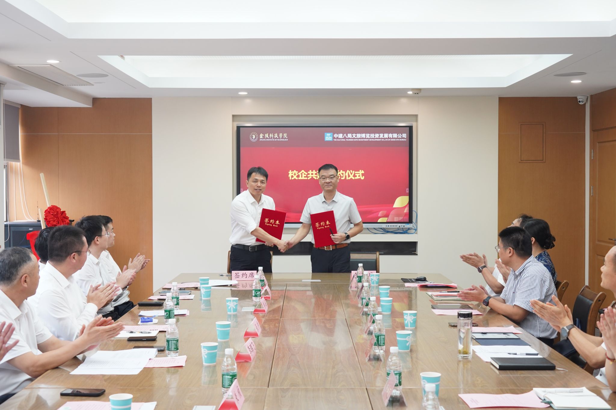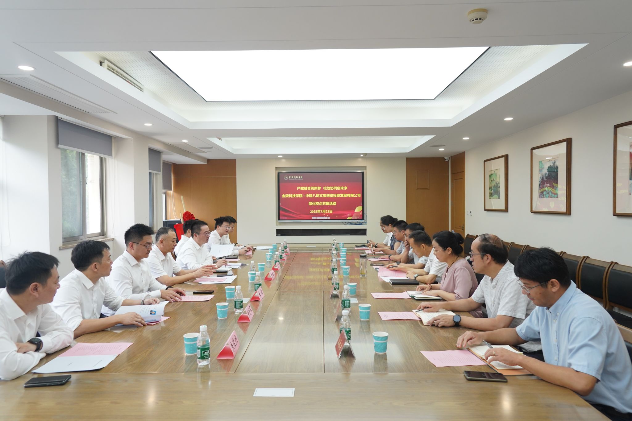 7月22日,中国建筑第八工程局有限公司江苏分局党委副书记李鹏飞,中建八局文旅博览投资发展有限公司党委书记、董事长张帅和副总经理朱桢率队来我校参加校企共建活动。副校长王延光、建筑工程学院党政班子成员及相关负责人参加活动。