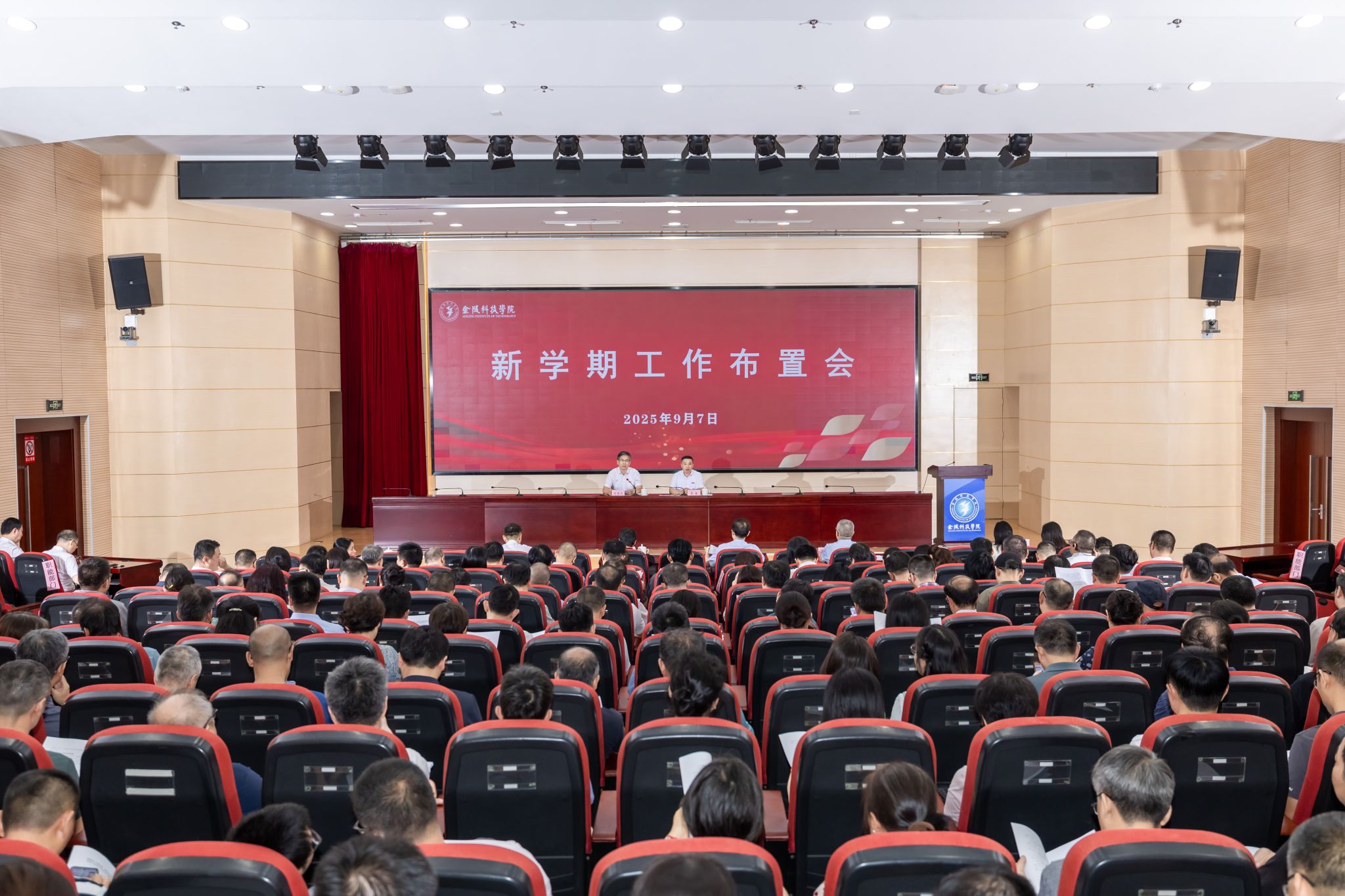 9月7日下午,我校在科技楼报告厅召开2025年秋季学期工作布置会。校领导,校督察专员,中层干部(含五级职员),全体正高职称教师和青年教师代表,部分民主党派基层组织主要负责人,校知联会主要负责人,各级人大代表和政协委员代表,部分教代会、工会、妇代会代表参加会议。校党委书记刘志远主持会议并讲话,校长季赛代表学校部署新学期工作。