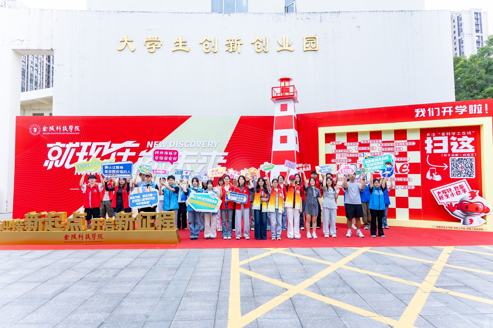 迎新现场,“就现在 向未来”的主题打卡点,以及由全体新生姓名组成“WELCOME”姓名墙,定格下他们与金科的第一张合影。各二级学院以“第41个教师节”为契机,将感恩教育融入报到环节,引导新生为现场忙碌的老师写下真挚祝福。“南京知识小问答”、智能机器人学生科技作品展等特色活动,既增进新生对南京的了解,也深化他们对学校的认同,播撒下爱宁爱校的种子。