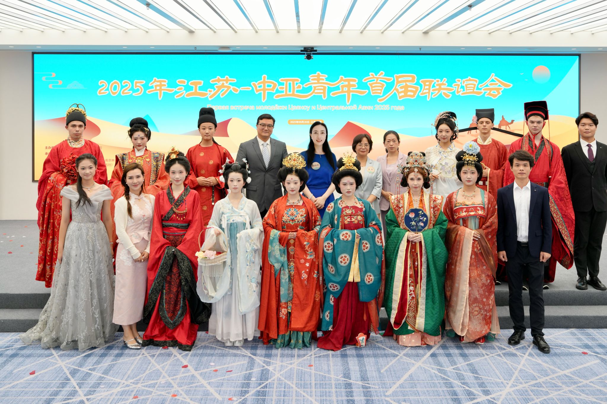 9月20日,“天涯共此时 丝路月更圆”2025江苏中亚青年首届联谊会在江苏中亚中心举行。本次联谊会由苏豪控股集团主办,我校联合在宁多所高校、南京出版社集团共同协办,旨在深入贯彻习近平总书记重要指示精神,深化共建“一带一路”倡议实践,搭建江苏与中亚地区青年交流的桥梁纽带。