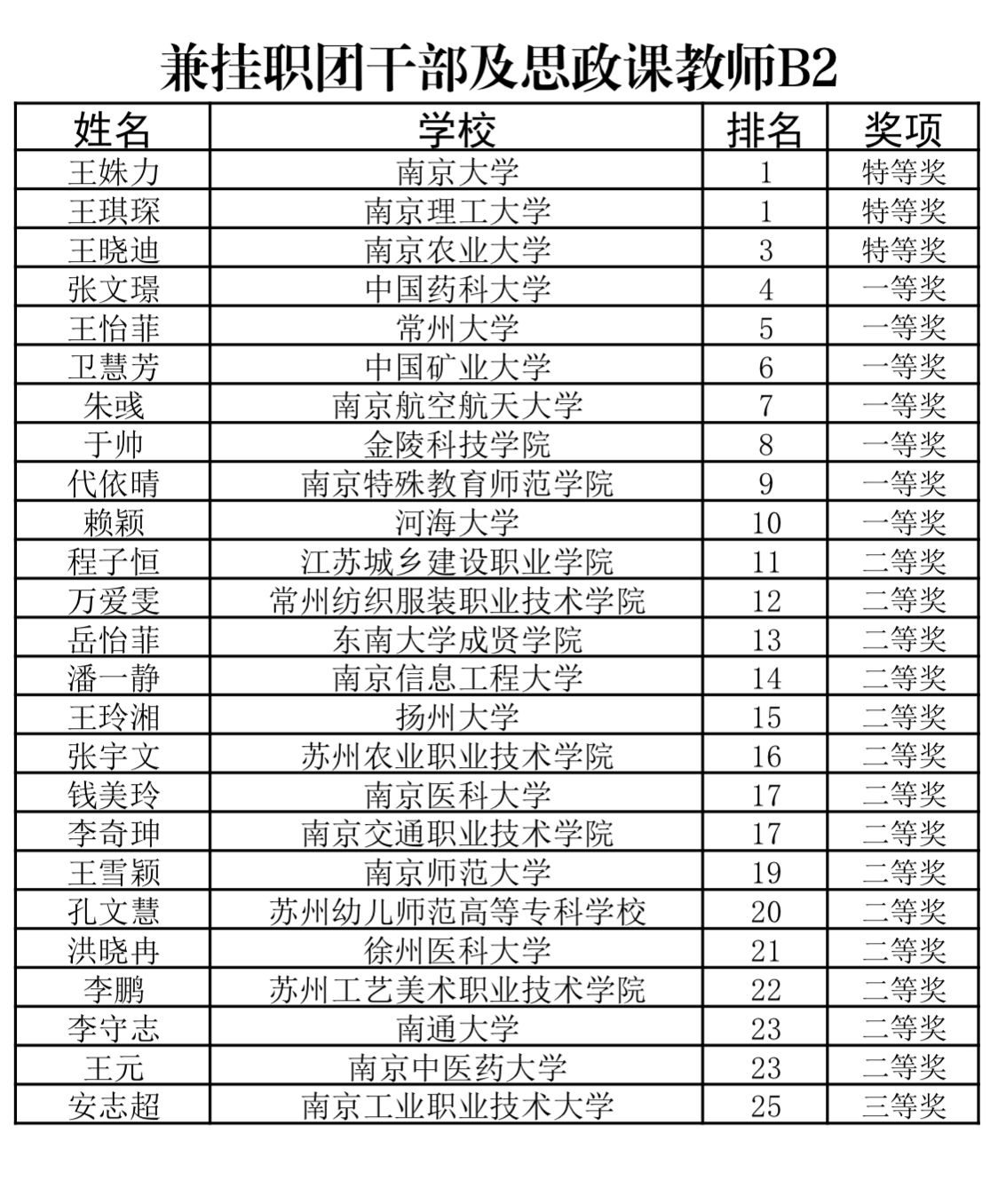 获奖名单