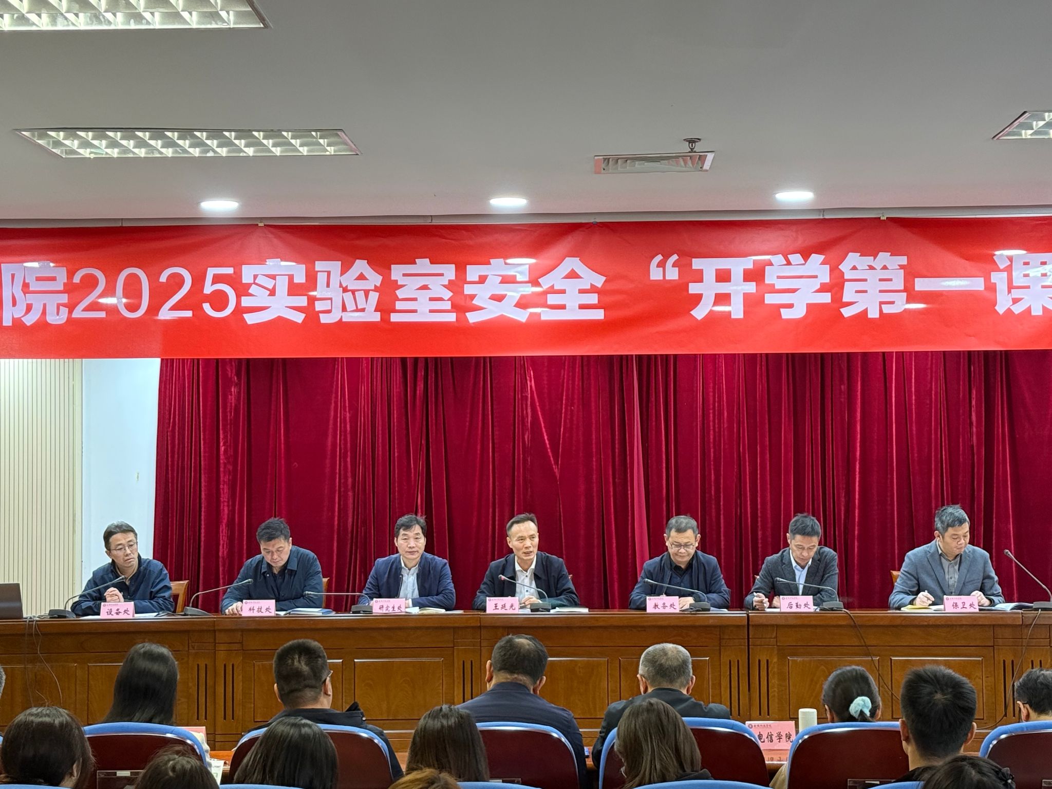 为压实实验室安全责任,提升师生安全防范与应急处置能力,10月22日,我校举办2025年实验室安全“开学第一课”暨安全应急演练,副校长王延光作动员讲话。教务处、研究生处、科技处、保卫处、后勤管理处、各二级学院负责人、实验室管理人员及师生代表参加活动。