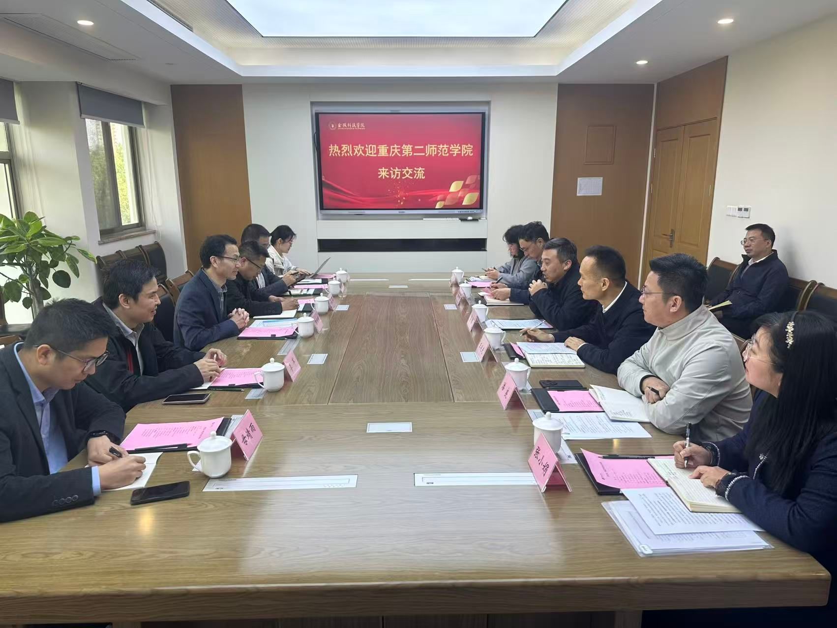 10月22日,重庆第二师范学院校长万书辉带领学校教务处、申硕办、发规处等相关部门负责人来校调研。校长季赛、副校长王延光及相关部门负责人参加接待活动。