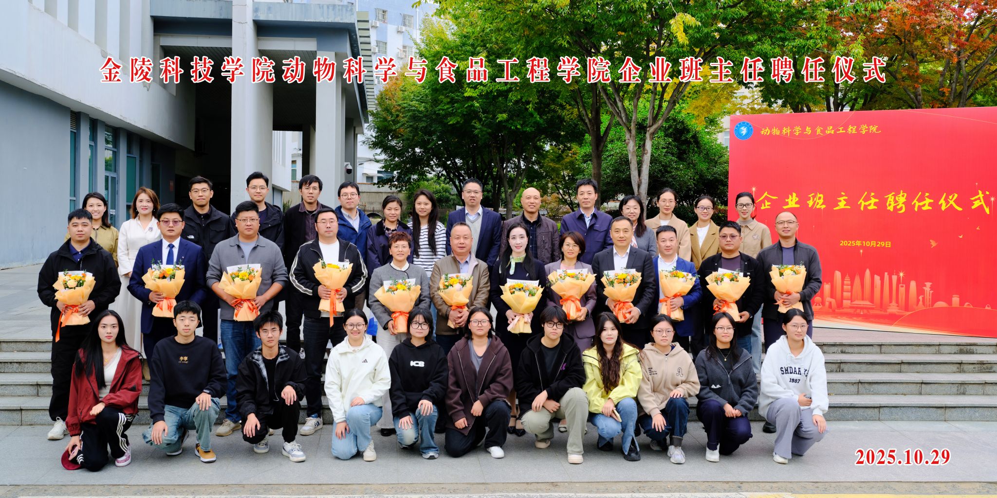 10月29日下午,动物科学与食品工程学院 2024 级、2025 级企业班主任聘任仪式在幕府校区图书馆报告厅隆重举行。大连三仪集团、江苏立华股份有限公司、南京禄口禽业股份有限公司等 12 家行业内颇具影响力的企业高管受邀出席,我校副校长顾晓燕和动物科学与食品工程学院师生代表参加聘任仪式。
