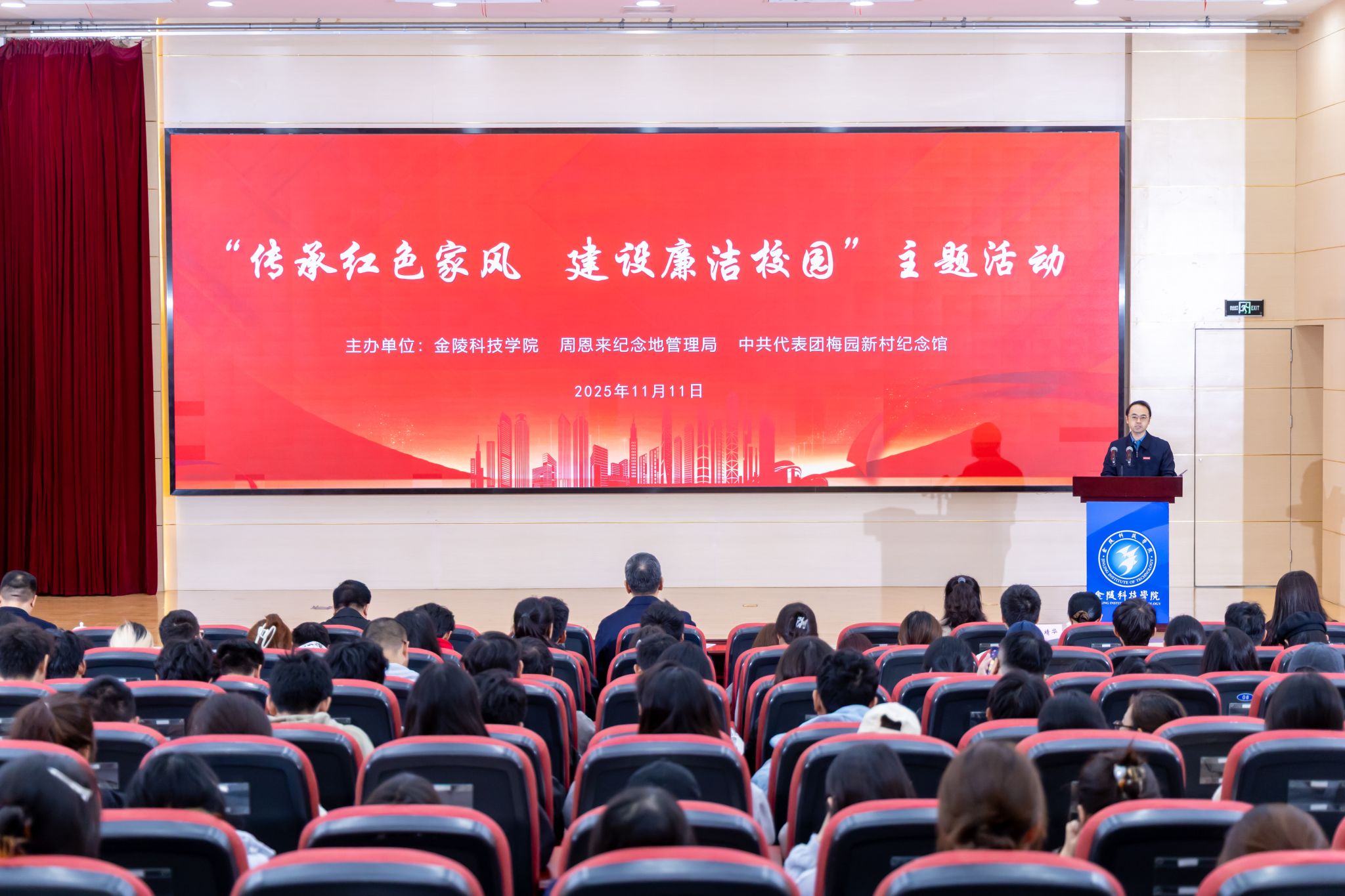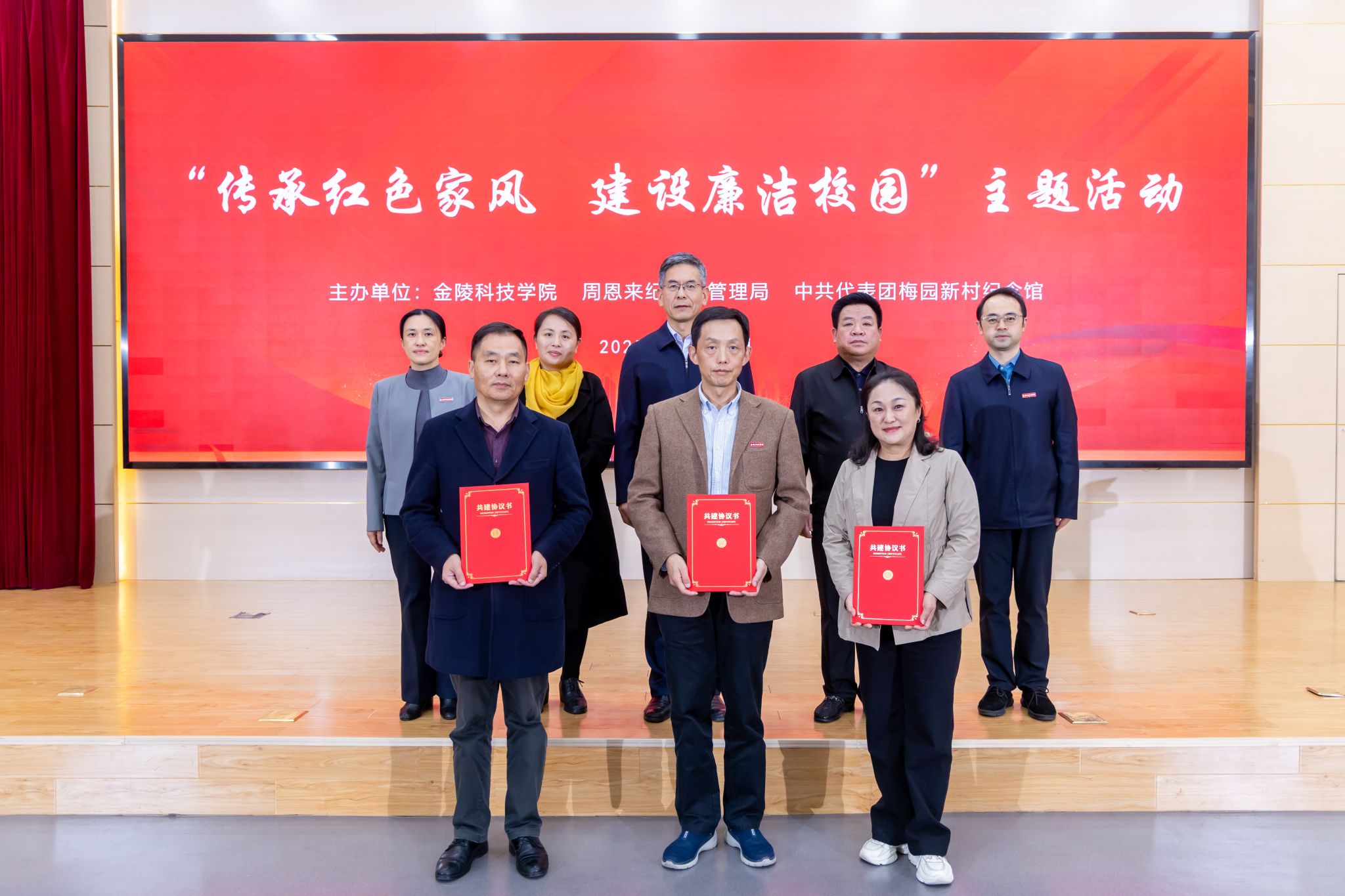 11月11日,我校与周恩来纪念地管理局、中共代表团梅园新村纪念馆共同举办“传承红色家风 建设廉洁校园”主题活动。校党委书记刘志远、纪委书记王靖华,周恩来纪念地管理局党委委员、副局长刘辉,中共代表团梅园新村纪念馆副馆长盛军,周恩来故居管理处主任李子权等出席活动。活动由校党委副书记单晓峰主持。