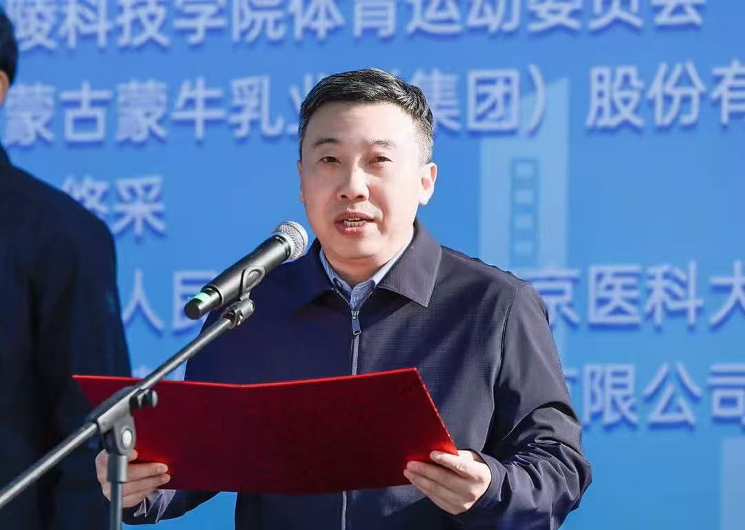 季赛在致辞中指出,学校一年来各项重点工作扎实推进,成绩斐然,获批江苏省一流应用型本科高校建设单位、博士学位授予立项建设单位,连续四年斩获南京市高质量发展综合考核第一等次,硕果累累的背后,是金科人永不懈怠的拼搏精神。他强调,体育是“五育并举”的核心环节,是落实立德树人根本任务的重要举措,学校构建的“以体育心、以体育智、以体育人”育人体系成效显著,95%的学生体质健康测试合格率、293人次省级以上赛事奖项,都是金科体育精神的生动注脚。最后,他引用习近平总书记“体育强则中国强,国运兴则体育兴”的重要论述,呼吁全体金科人将运动融入日常,以昂扬姿态奔赴新征程。