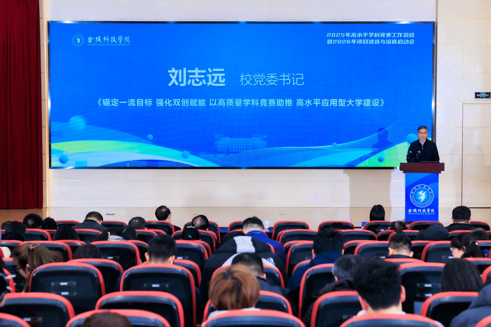 刘志远在讲话中指出,做好学科竞赛工作,对于深化我校创新创业教育改革,提升人才培养质量,服务国家创新驱动发展战略具有重要意义。针对2026年项目遴选与培育工作,他强调:一要聚焦选题培育提质,让创新源头“活起来”。要围绕人工智能、智能制造、绿色低碳等前沿领域,引导师生关注行业前沿动态,从国家和区域的产业痛点出发凝练科学问题。二要聚焦协同机制创新,让攻坚合力“聚起来”。要推动交叉融合,推广“跨学院、跨学科、跨专业”组队,推行双导师制,依托国家级众创空间和省级大学生科技园整合资源,为师生提供保障。三要聚焦成果转化增效,让创新价值“实起来”。要建立健全成果转化激励机制,将竞赛成果转化为教学资源,融入行业标准,实现“以赛促教、以赛促学”,厚植双创文化。四要聚焦责任落实见效,让实干担当“强起来”。各二级学院负责人要将学科竞赛列为“一把手”工程,着力提升教师实践与指导能力,将竞赛成效纳入考核评定体系,激励实干。