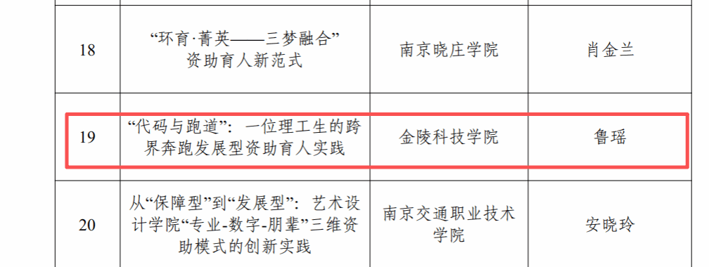 近日,江苏省教育厅办公室发布《关于公布2025年“苏乡永助”资助育人主题活动结果的通知》(苏教办助函〔2026〕1号),我校在本次活动中获得多项荣誉。其中,《暑光里的牵挂:一场跨越家校的温柔奔赴》入选学生资助短视频名单,《“代码与跑道”:一位理工生的跨界奔跑发展型资助育人实践》入选资助育人工作案例名单,李章花同学荣获“江苏学生资助宣传大使”称号。