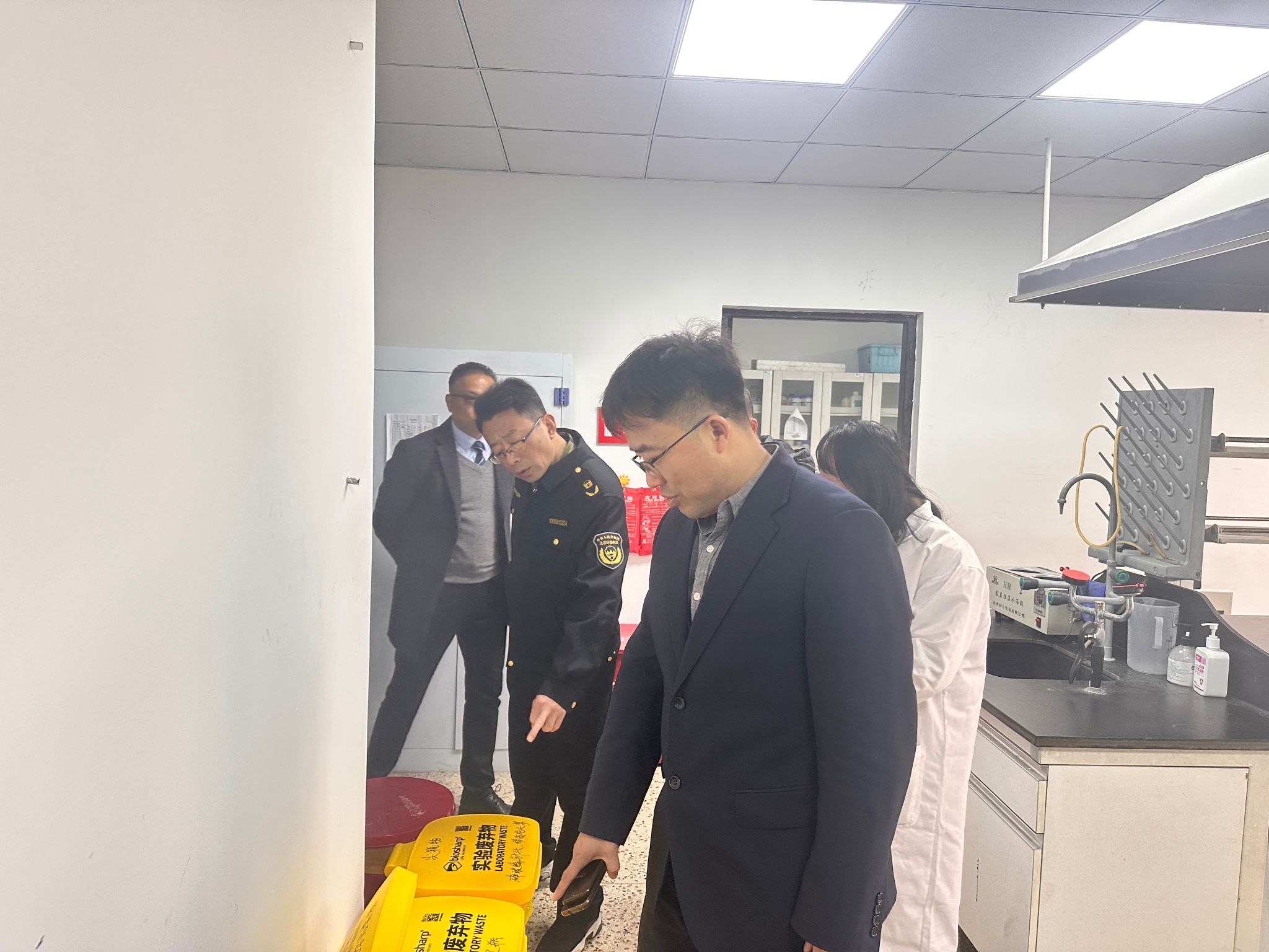 为扎实开展实验室安全督导检查,压紧压实高校实验室安全主体责任,提升实验室安全隐患排查整治行动水平,3月1日上午,栖霞区教育局、应急管理局、公安分局、生态环境局、市场监管局、消防救援大队以及南京市教育局装备中心组成联合检查组,到我校幕府校区开展驻地高校春季学期开学实验室安全专项检查。副校长叶智锐带领实验室与设备管理处、保卫处、后勤管理处、园艺园林学院、动物科学与食品工程学院、理学院等相关单位负责人陪同检查。