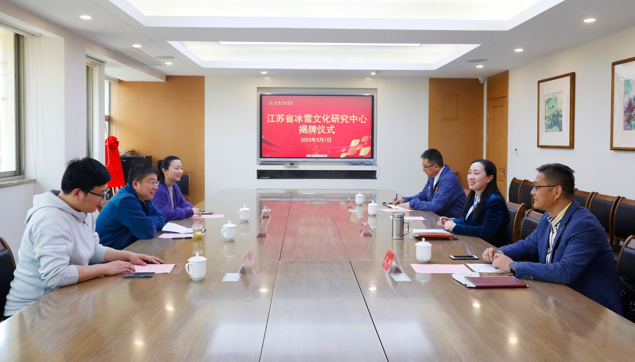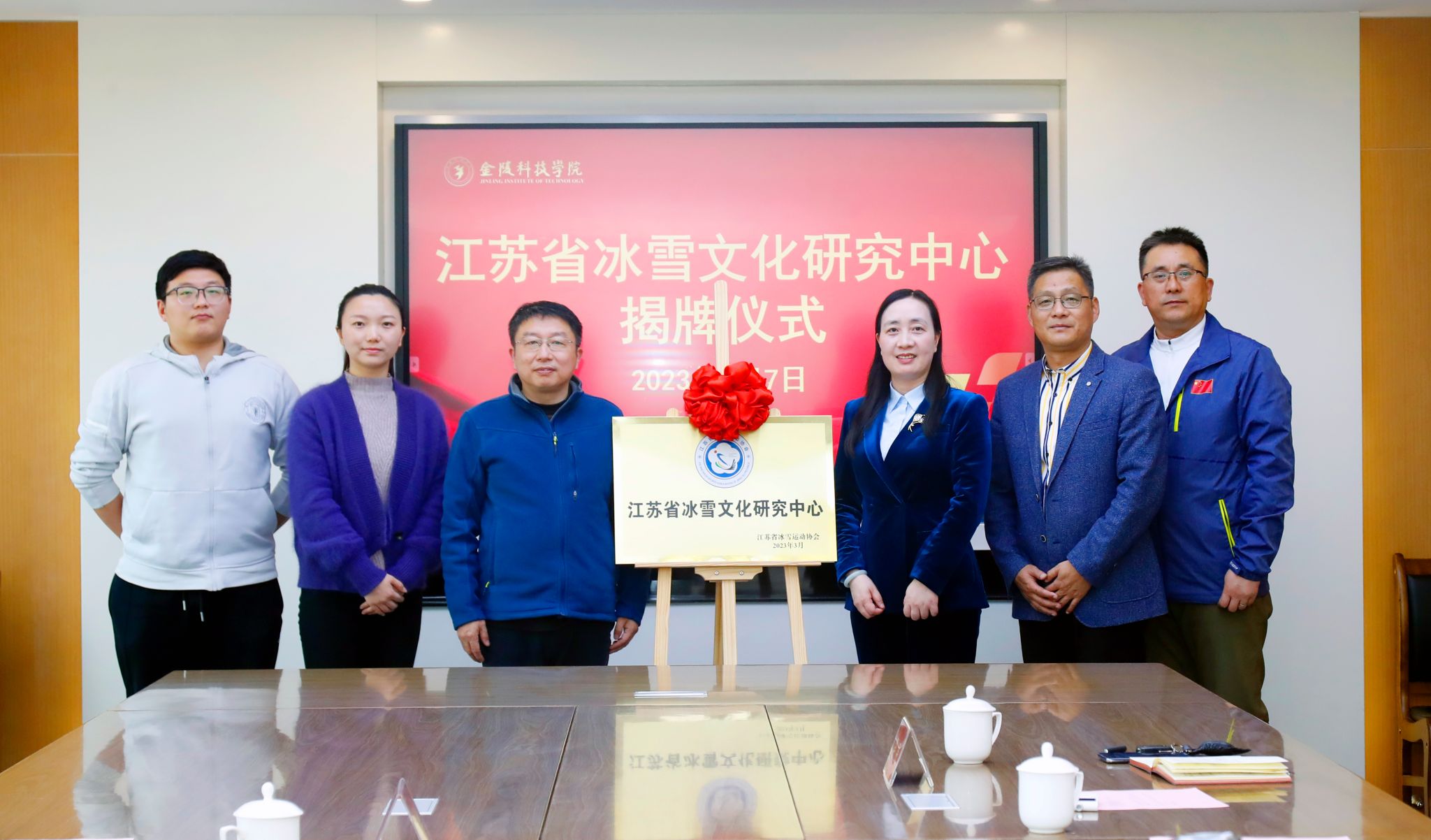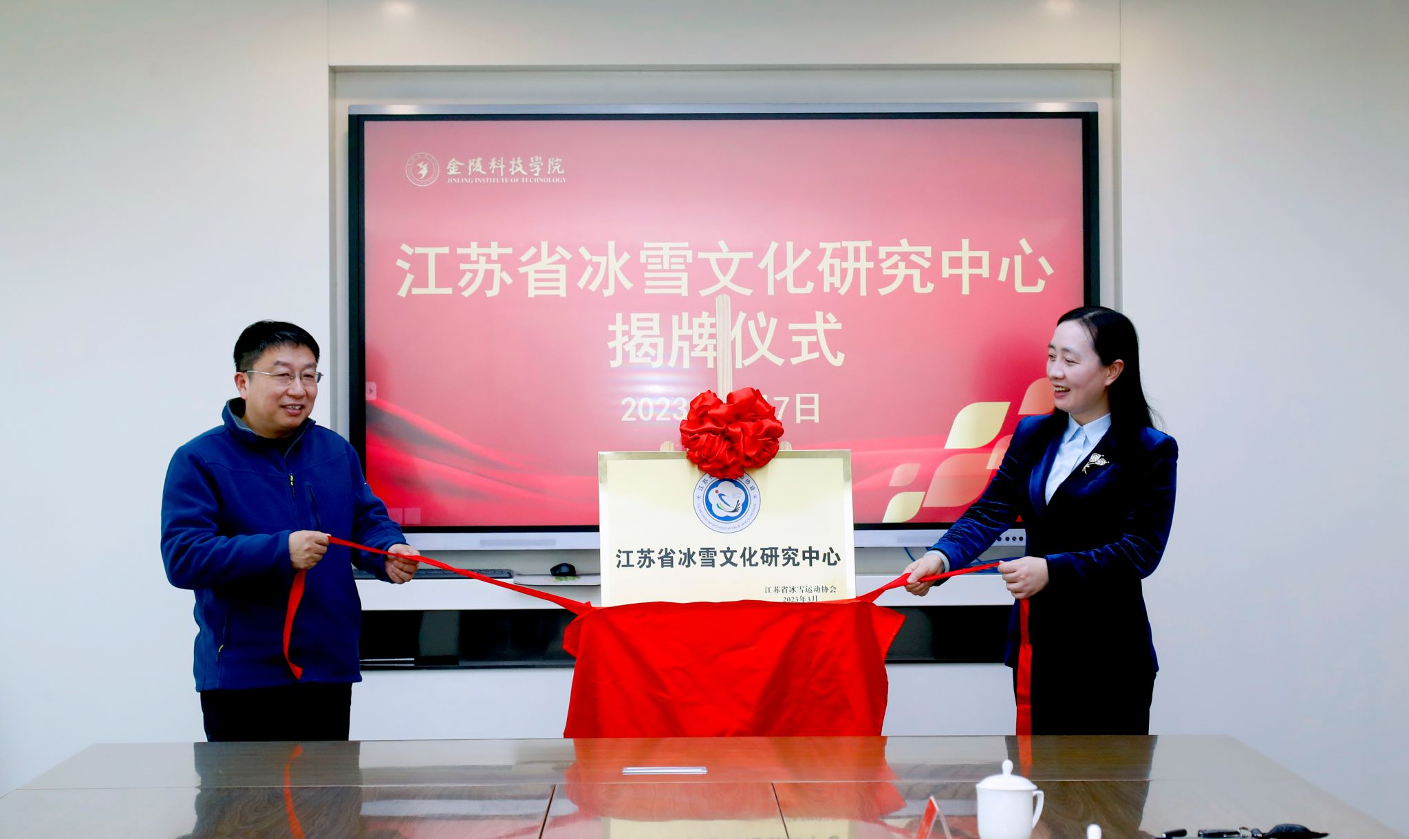 3月7日,江苏省冰雪文化研究中心揭牌仪式在我校江宁校区举行。省体育局冬季运动管理中心主任、省冰雪运动协会秘书长朱晓军,省国际体育交流中心综合部部长、省冰雪运动协会副秘书长陈燕,省体育局冬季运动管理中心孙浩翔,我校副校长顾晓燕及体育部相关人员出席了揭牌仪式。