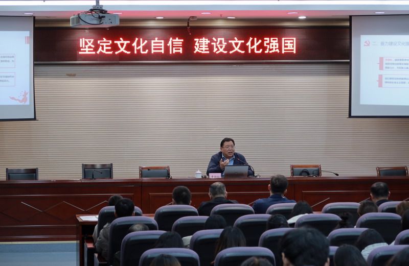 3月22日下午,南京市社会科学界联合会党组书记、主席,南京市社会科学院院长曹劲松应邀来我校幕府校区作主题为“坚定文化自信,建设文化强国”的学术报告,校纪委书记王延光、人文学院全体教师和相关专业学生二百余人聆听了报告。