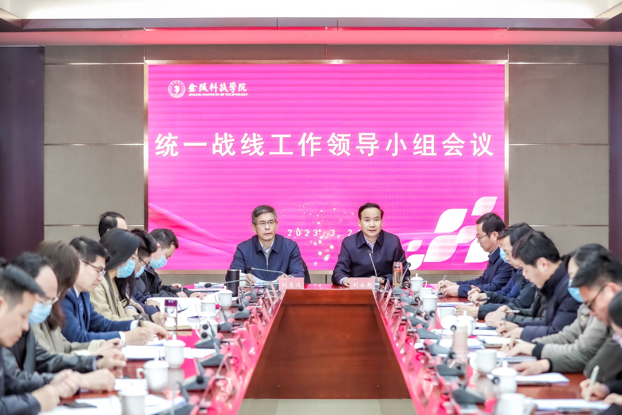 3月24日上午,我校在江宁校区科技楼四号楼裙楼会议室召开统战工作领导小组会议,校党委书记刘志远、校长刘永彪、校党委副书记单晓峰以及统战工作领导小组成员出席会议。会议由刘志远主持。