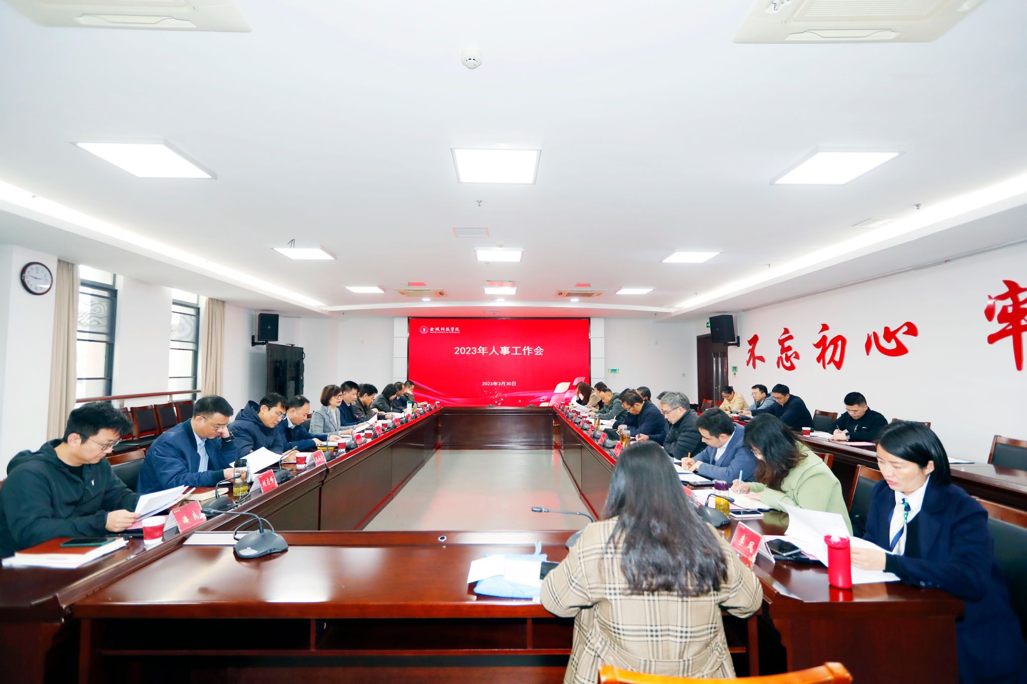 3月30日下午,我校在江宁校区图书馆第一报告厅召开2023年度人事工作会议,副校长倪杰主持会议并讲话,人力资源处及各院(部)行政主要负责人参加了会议。