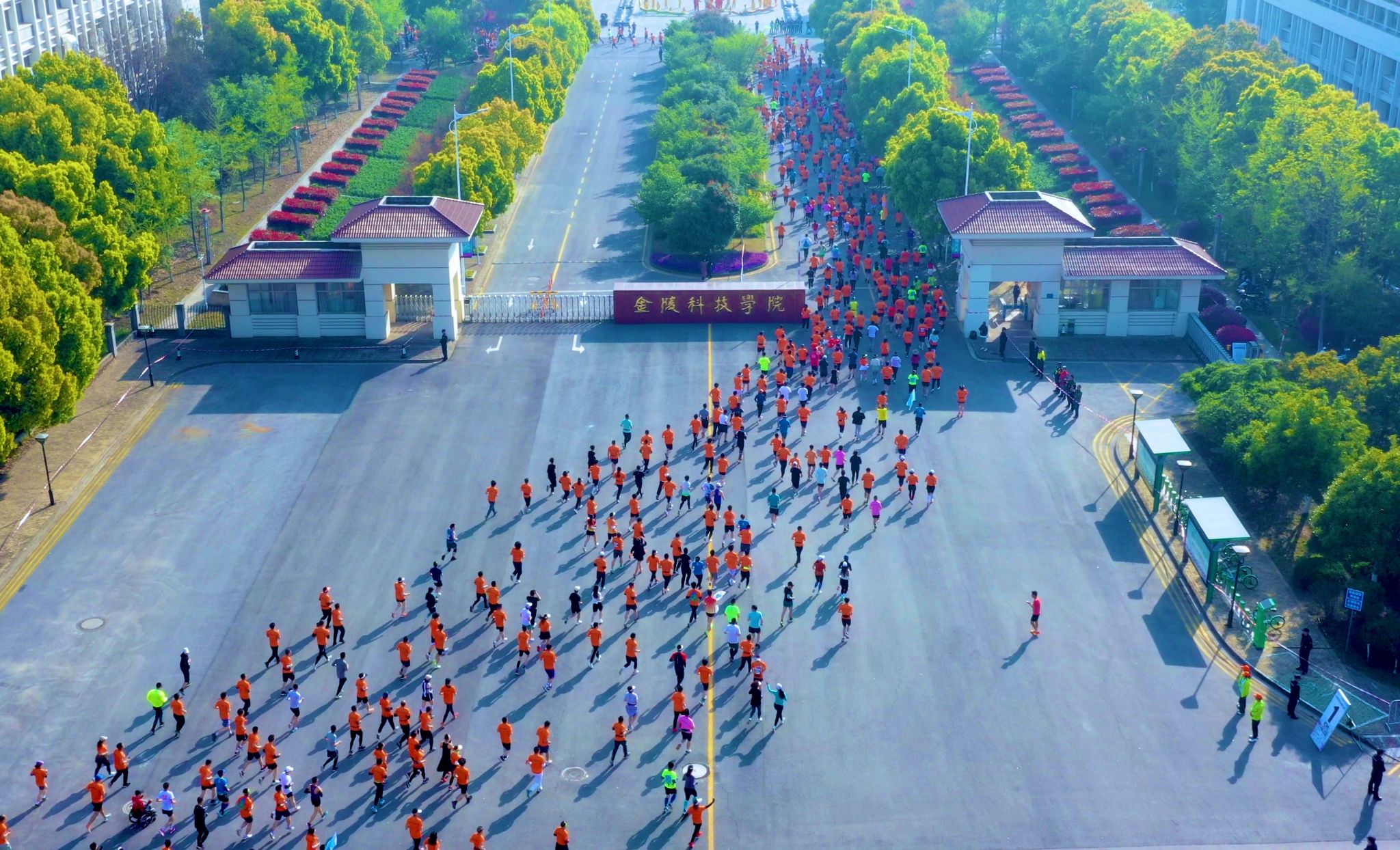 4月9日,2023南京江宁大学城半程马拉松在江宁大学城体育中心鸣枪开跑。作为近年来江宁区规模最大的马拉松赛事,共吸引了来自全国各地超过11000名马拉松爱好者报名参加,本次赛事包括大众组半程马拉松和五公里欢乐跑。我校是本次赛事唯一一所全组别穿越校园赛道的高校,被喻为“江宁半马第一校”。当春风吹进大学城,当马拉松跑进金科校园里,青春的气息,奋斗的气息,奔跑的气息为11000余名跑友留下了深刻印象。
