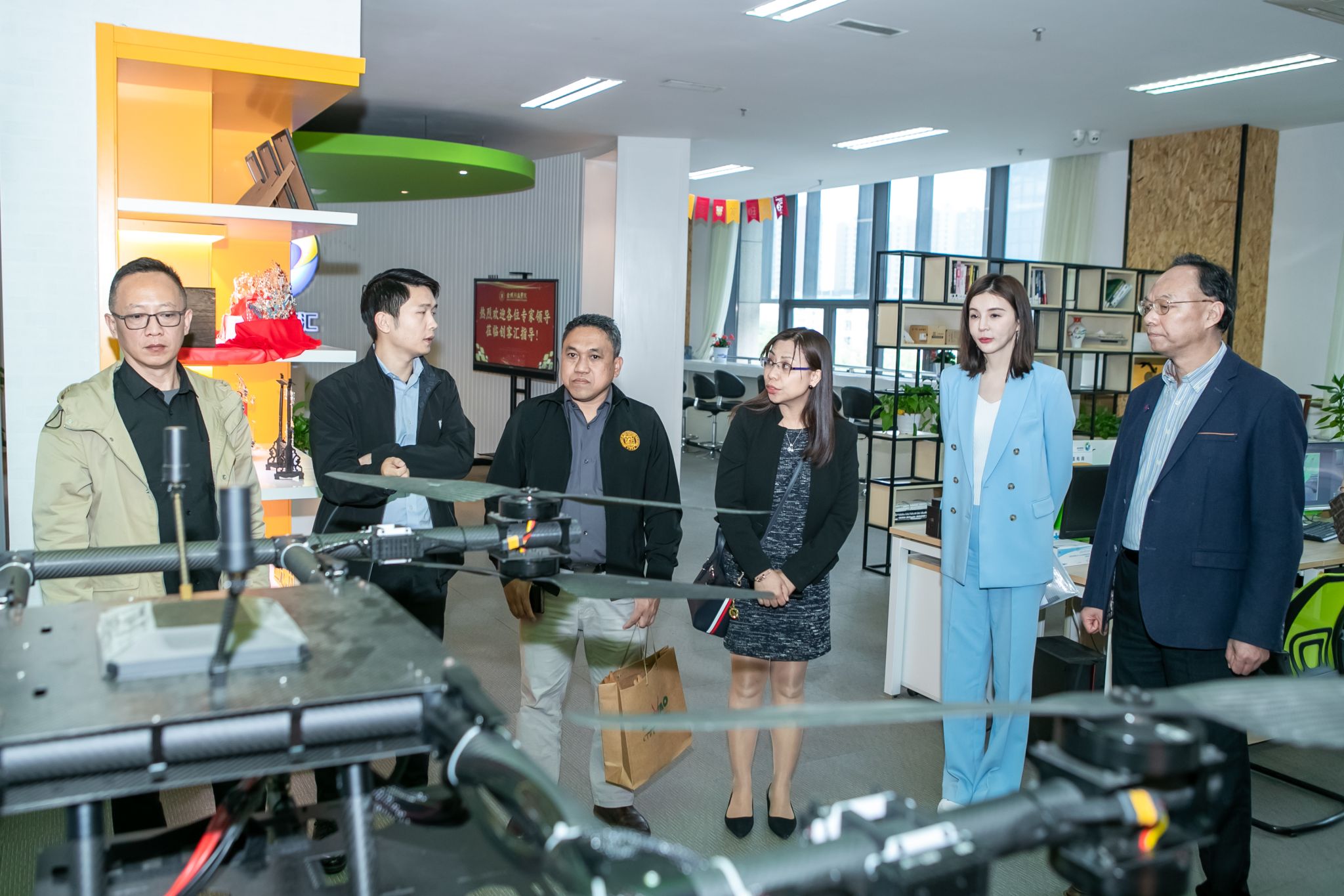 菲律宾东南大学副校长一行还参观了金科创客汇及人工智能国际联合实验室,双方围绕学生创业孵化项目进行了深入交流。