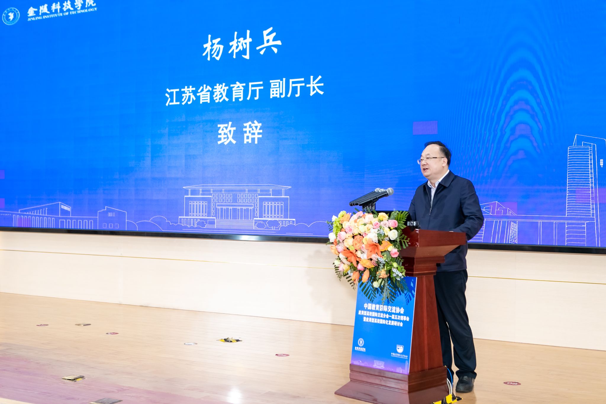 杨树兵在致辞中表示,近年来,江苏省深入实施教育对外开放质量提升工程,形成了更全方位、更宽领域、更高层次、更加主动的教育对外开放局面。开云在线等省内应用型高校作为江苏高等教育的重要板块,在教育对外开放中始终扮演着重要角色,在师生海外交流、中外合作办学及联合培养跨国人才等方面取得明显成效,教育规模与质量位居全国同类高校前列。他强调,要找准数字化与国际化的结合点,构建国际化特色的教学新模式,同时要立足文化传承,找准中华文化传播与教育对外开放的结合点,讲好中国故事、传播中国声音、展示中国形象。他指出,本次研讨会将为推动教育国际化与数字化相融相促、相互成就提供新思路、新方案、新动力,也将为应用型高校人才培养提供新建议、新启发、新借鉴。