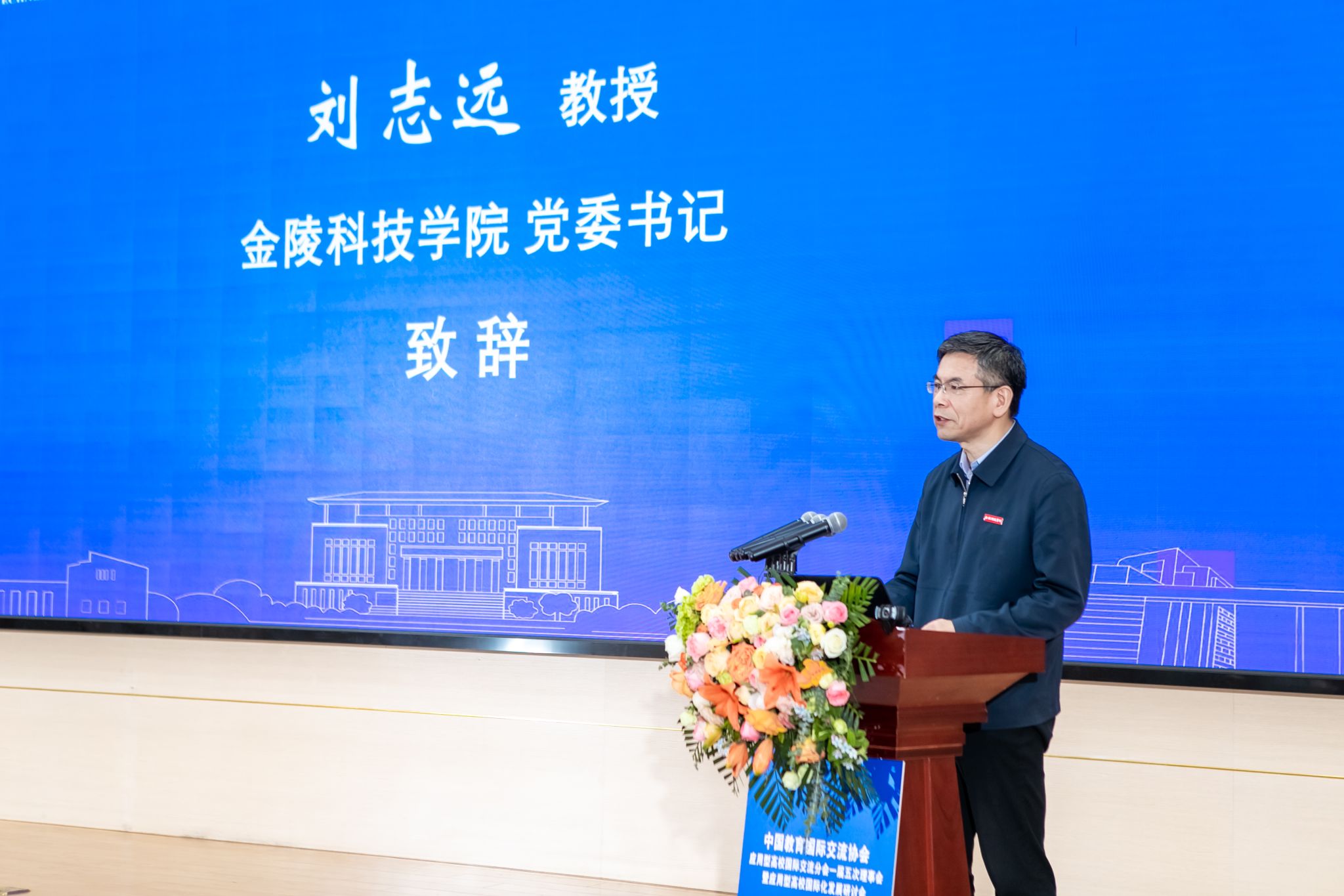 刘志远向长期以来关心支持我校建设发展的领导、专家表示感谢。他在致辞中指出,学校紧紧围绕南京经济社会发展需求,坚持开放办学,着力提升人才培养国际化、师资国际化和科研国际化水平。近年来,我校认真贯彻落实习近平总书记关于“网络强国”的重要思想,将“网络化”确定为学校发展的先机战略,主动融入教育数字化浪潮,将其作为推动学校转型发展、改革创新的绝佳机遇和重要抓手,聚焦新一代信息技术和战略性新兴产业领域,锚定数字化、网络化、智能化方向,推动数字技术与教学融合,聚力高素质应用型人才培养。他表示,希望与分会兄弟高校一起,共同探索应用型高校国际化、数字化发展的新路径,为推动高等教育改革创新和高质量发展、办好人民满意的教育作出更大贡献。