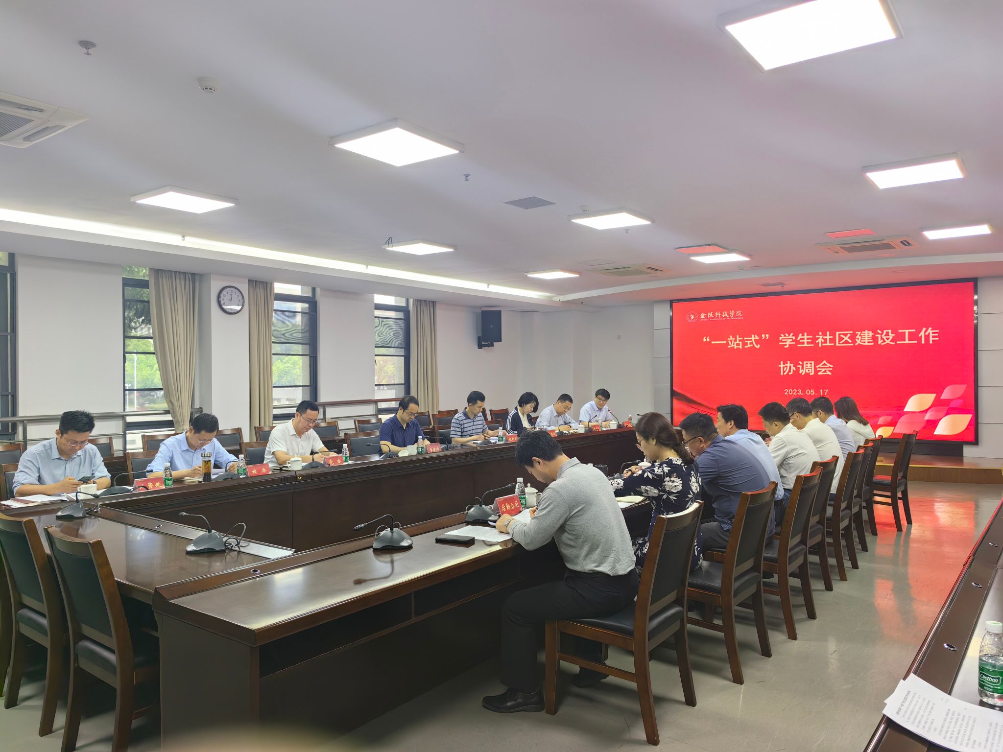 学生工作处处长汪如春传达了江苏省教育厅关于高校“一站式”学生社区综合管理模式建设工作相关文件精神,并详细介绍了我校“一站式”学生社区建设工作实施方案。相关部门结合本单位职能对党建引领、协同管理、学生参与、条件保障等方面进行了交流讨论。